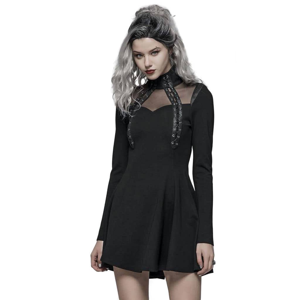 Robe à manches longues avec capuche pour femmes, style punk gothique