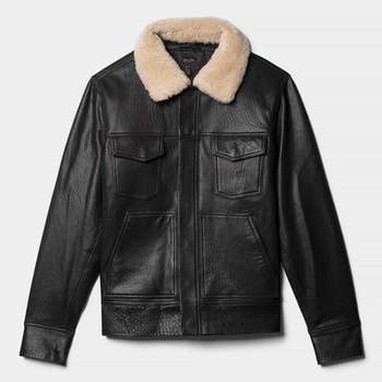 Blouson en cuir noir uni intemporel pour homme en vente B2B