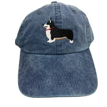 Casquette de baseball en jean brodée pour chien Teckel en vente B2B