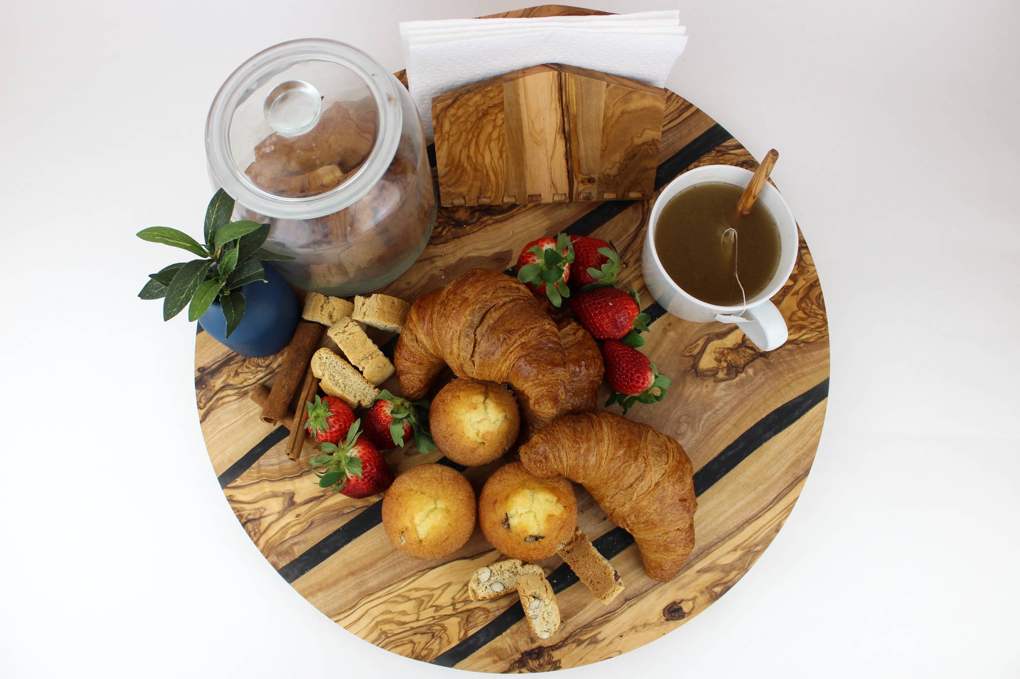 Natural OliveWood is a family-owned business that handcrafts kitchenware from non-productive olive trees. Born and raised in Sfax, Tunisia, brothers Hatem and Walid Alimi learned the art of carving the trunks of olive trees as children. Today, the Alimi brothers (and family) produce naturally beautiful kitchen products, all boasting the distinct swirling patterns of the trees’ twisted trunks. Nonporous by nature and coated in a protective layer of olive oil, Natural OliveWood products are safe and sustainable.