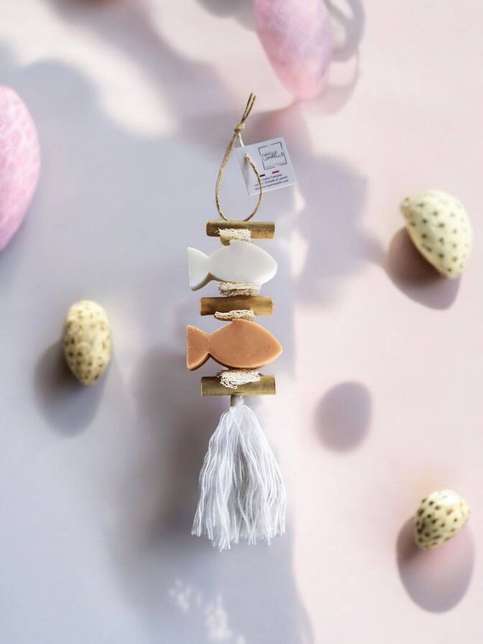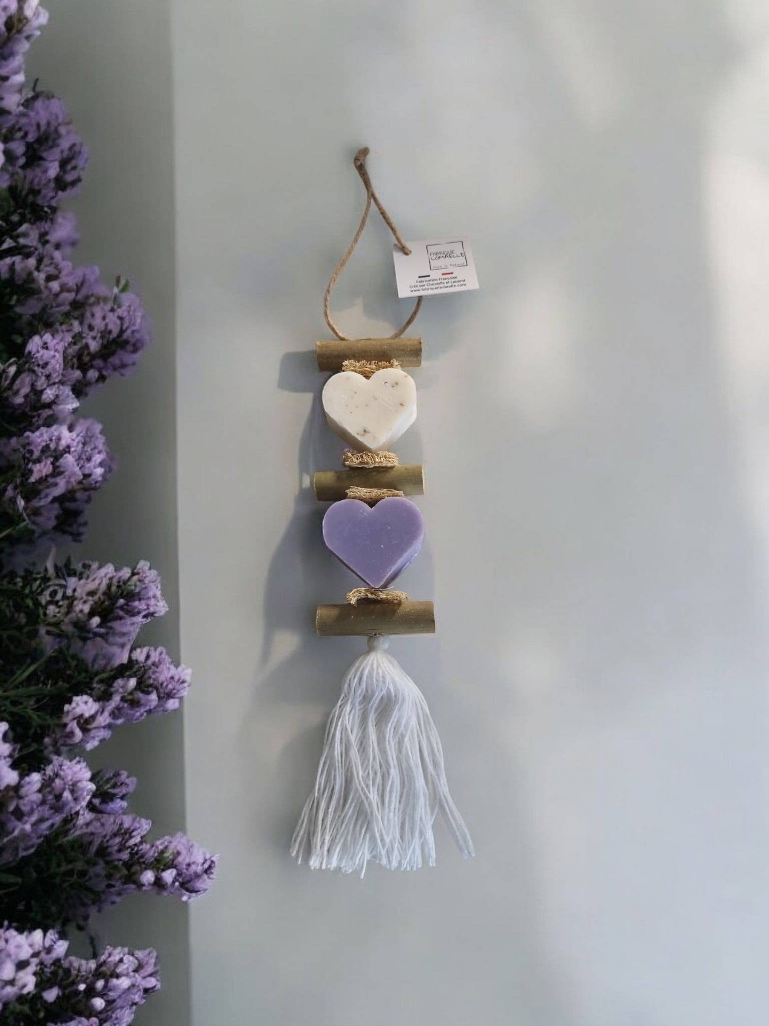 We create and handcraft our soap braids using scented soaps and various plants. The production takes place manually in our workshop located in Monteux near Avignon. It's an original and fragrant way to brighten up your bathroom, dressing room, or other rooms in the house. It's the perfect little gift for all sorts of occasions. A scented soap braid is a unique decorative item that will add a touch of softness and fragrance to your interior. Handmade from natural soaps, it is an ideal gift for soap or decoration enthusiasts.