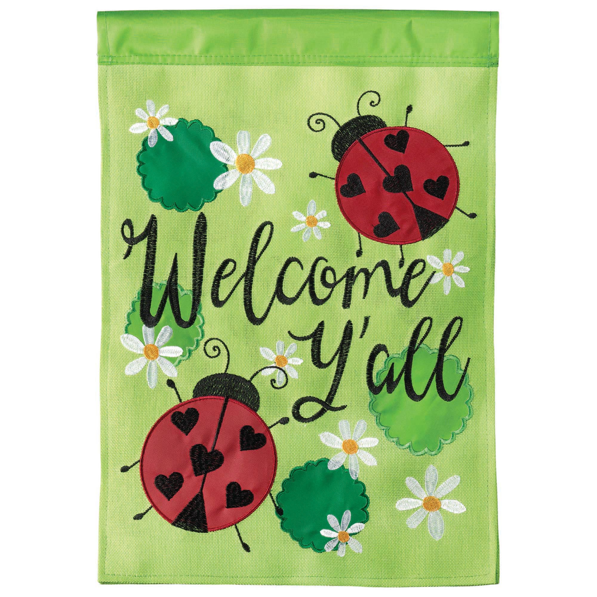 In 2016, Dicksons acquired Magnolia Garden Flag Company. Since then, we have expanded our flag selections, by continuing the same vivid colored designs, and adding new exciting styles! Our flags are all weather-resistant. Printed flags are sublimated on a heavier weight fabric than most, to give a stained glass effect in the light. A gas is released into the fabric which lets the dye go through the fabric and create a full color print.Fabric is 650 denier polyester. Our print flags are 2" wider and 4" longer than any other flag on the market. All of our flags are double sided artwork! Our double sided applique flags are double the thickness! They are heavier than most flags on the market and will hold up longer. They have detailed stitching and a combination of appliqued fabric and embroidery stitch. Each of our flags will insure a inspiring, welcoming message to your home,garden,and business, and drive a much wanted curb appeal!