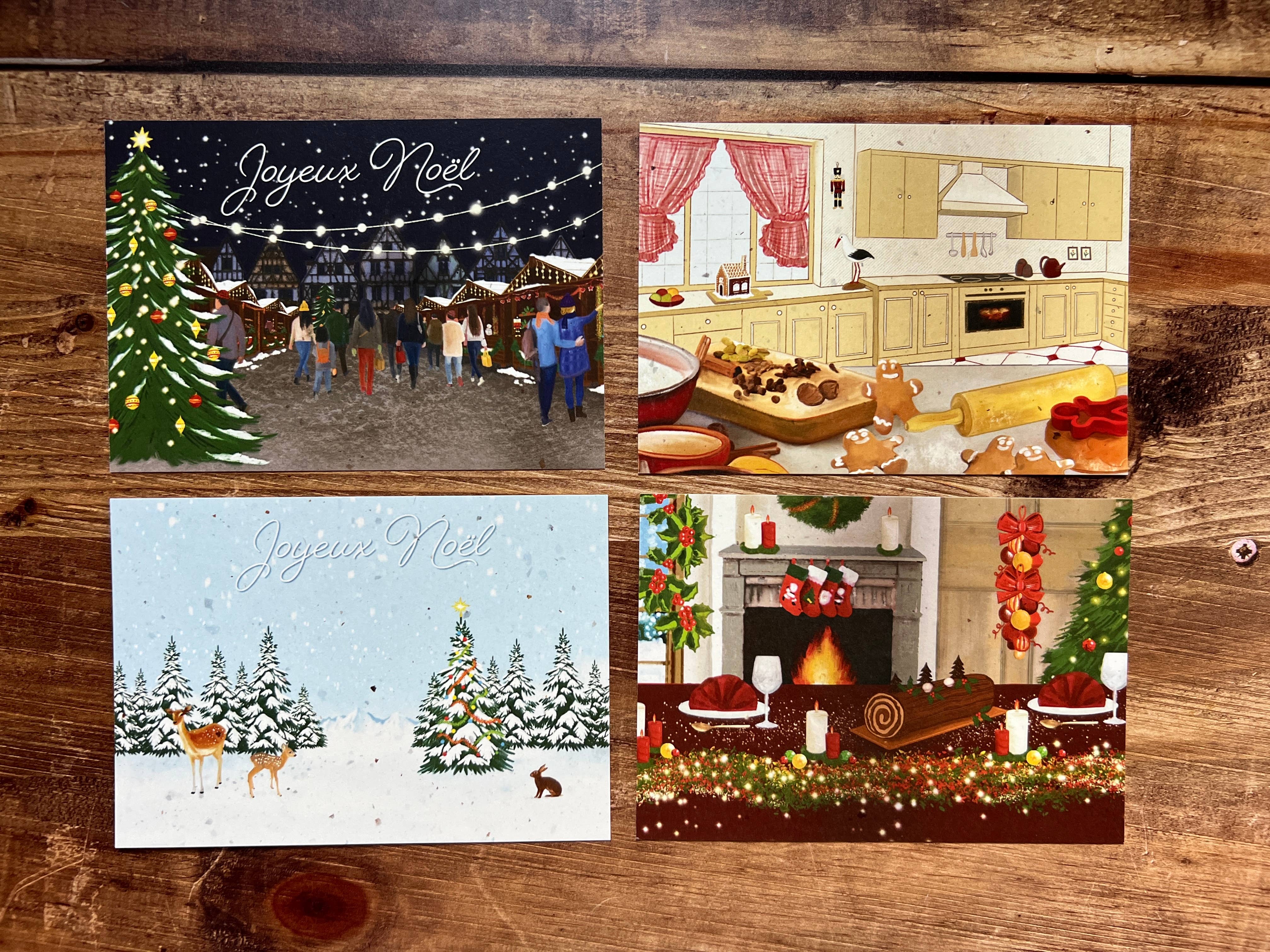A set of 3 x 5 A6 cards double-sided printing (on the back legal notice + space to write a short note) On the theme of the end of the year, Christmas, Alsace Paper 250 grams of tulip bulb scraps Illustrated by dyv.Illustrations @artwderya Composition of the paper: 100% tulip bulb residues - Does not contain any paper pulp - Made from waste THESE ARE NOT PLANTING CARDS Sold without an envelope - they are available at an additional cost If a reference is missing it can be replaced by another one in the same theme - also - if a reference does not please you among this lot, do not hesitate to write to me we can also exchange it:)