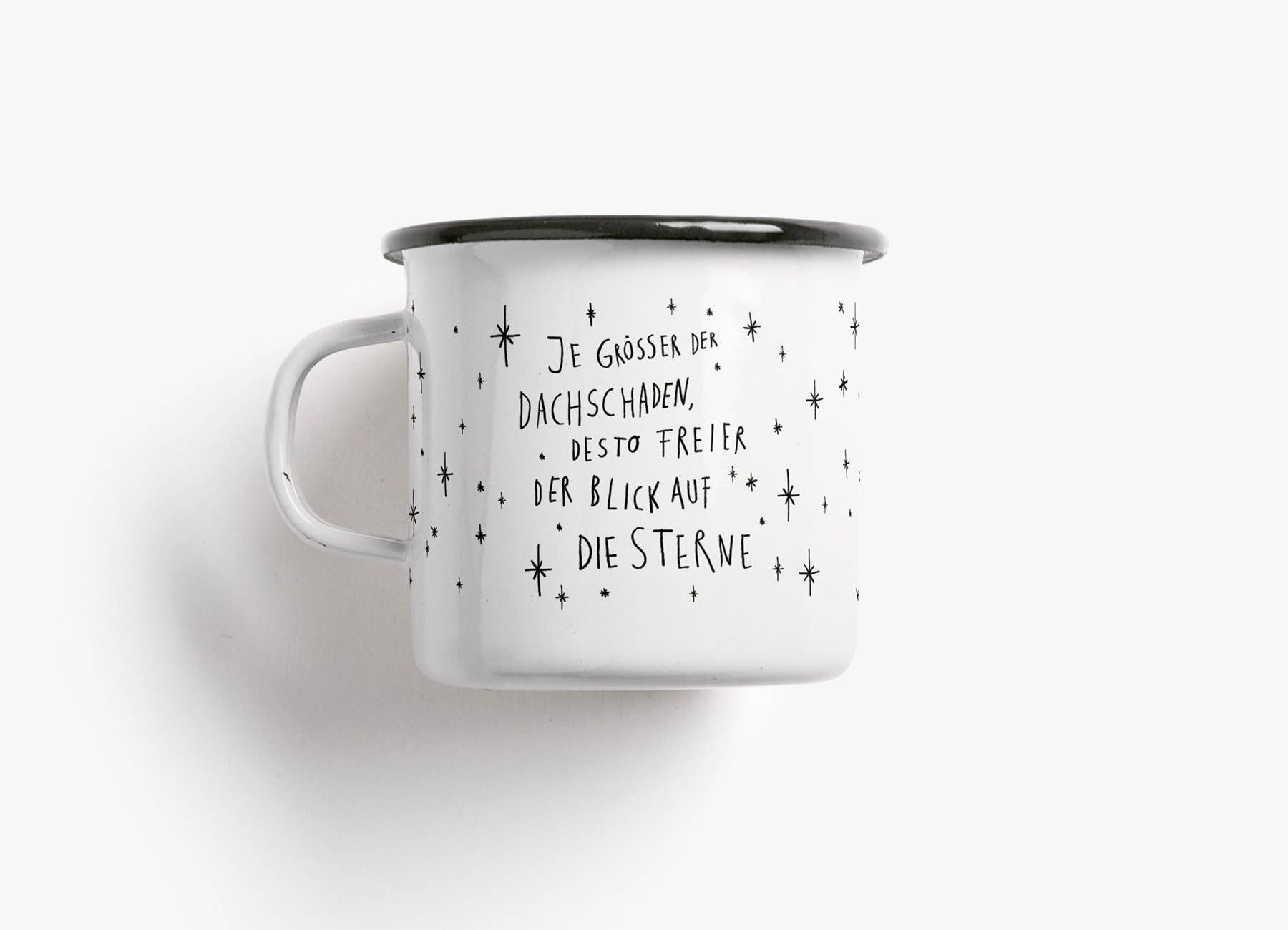 Designed to stand the test of time, always a stylish choice and a sustainable icon of the van life movement. Your new lifetime piece and loyal companion. This mug will accompany you: Enamel cups from Typealive are lightweight, robust and weatherproof — the ideal companion for traveling. For camping, traveling, festivals, outdoors, indoors, wherever you want. Illustrated in Münster (with pen and paper) and printed by hand in a small edition. format Height and diameter 8 cm, volume 0.3 l, weight 160 gr. Printing and material Monochrome print/black on enamel. White handle and black trim Good to know Our mugs are printed by hand in small batches. Small irregularities such as uneven enamel or small black dots cannot be avoided during production and make every mug unique. We recommend hand washing.
