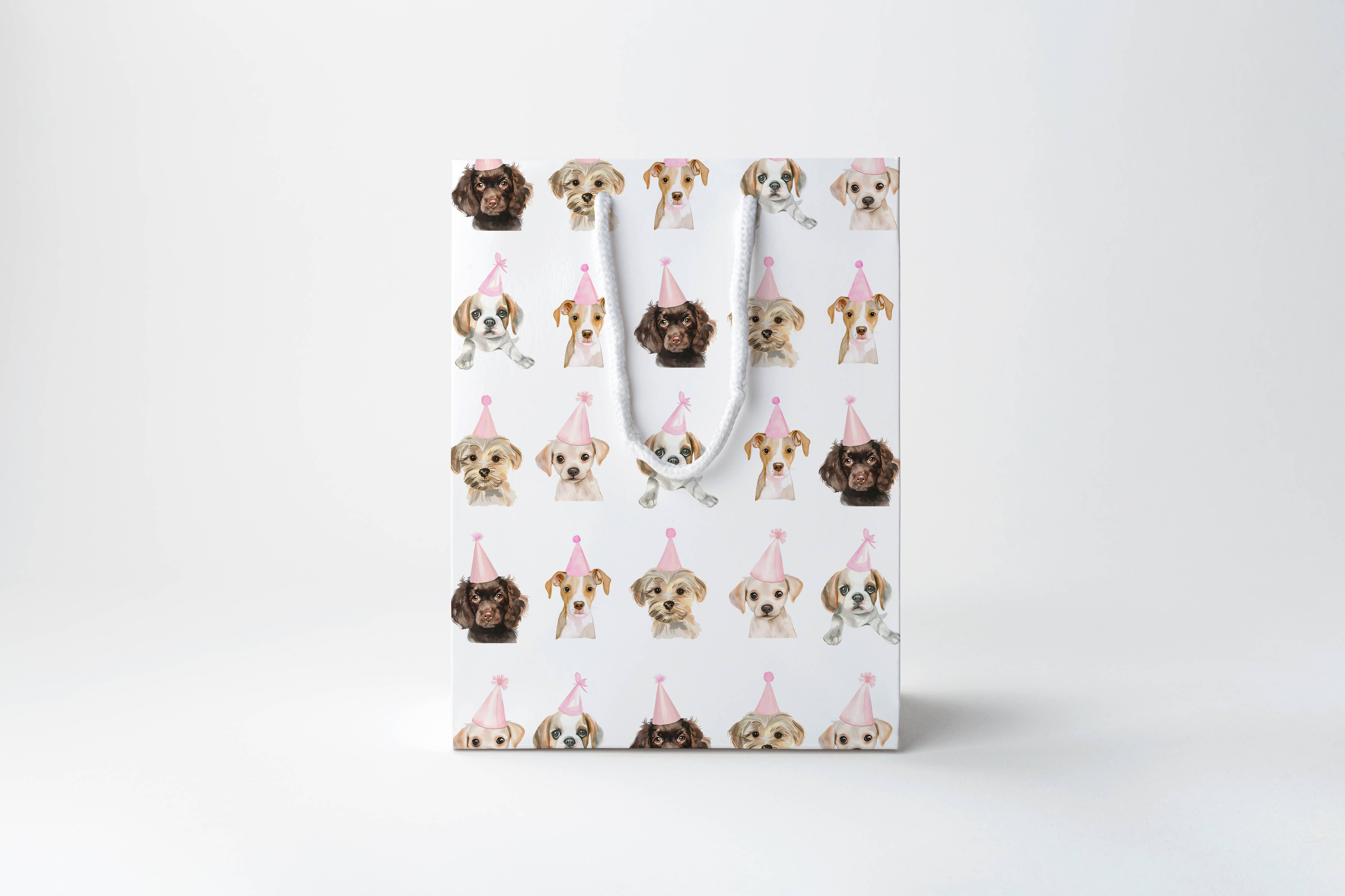 *Each bag is 9.6"L x 4.5"W (gusset) x 13"D *Our bags are printed on heavyweight scuff resistant stock paper. *Bags have gusseted sides, flat bottom with glued-in reinforcement card, folded upper lip, metal grommets, and premium rope handles