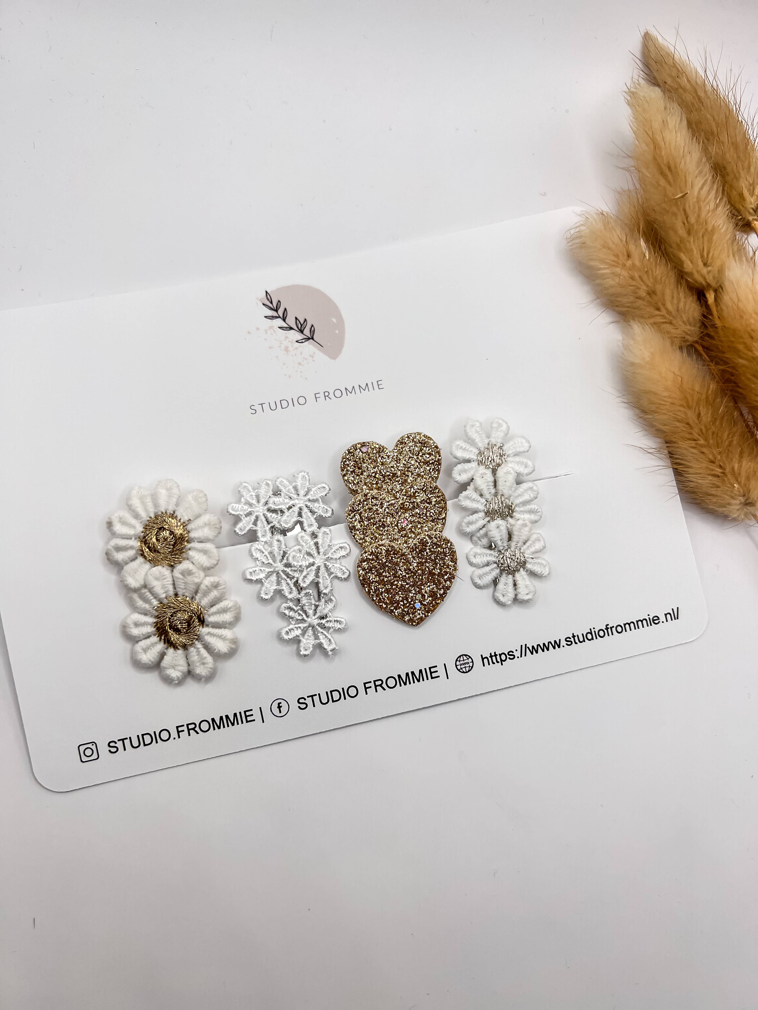 Neatly glued, unusual designs. We love the crocheted flowers so much. It's also great that there are small clips. The quality matches the price. We've already placed the next order.