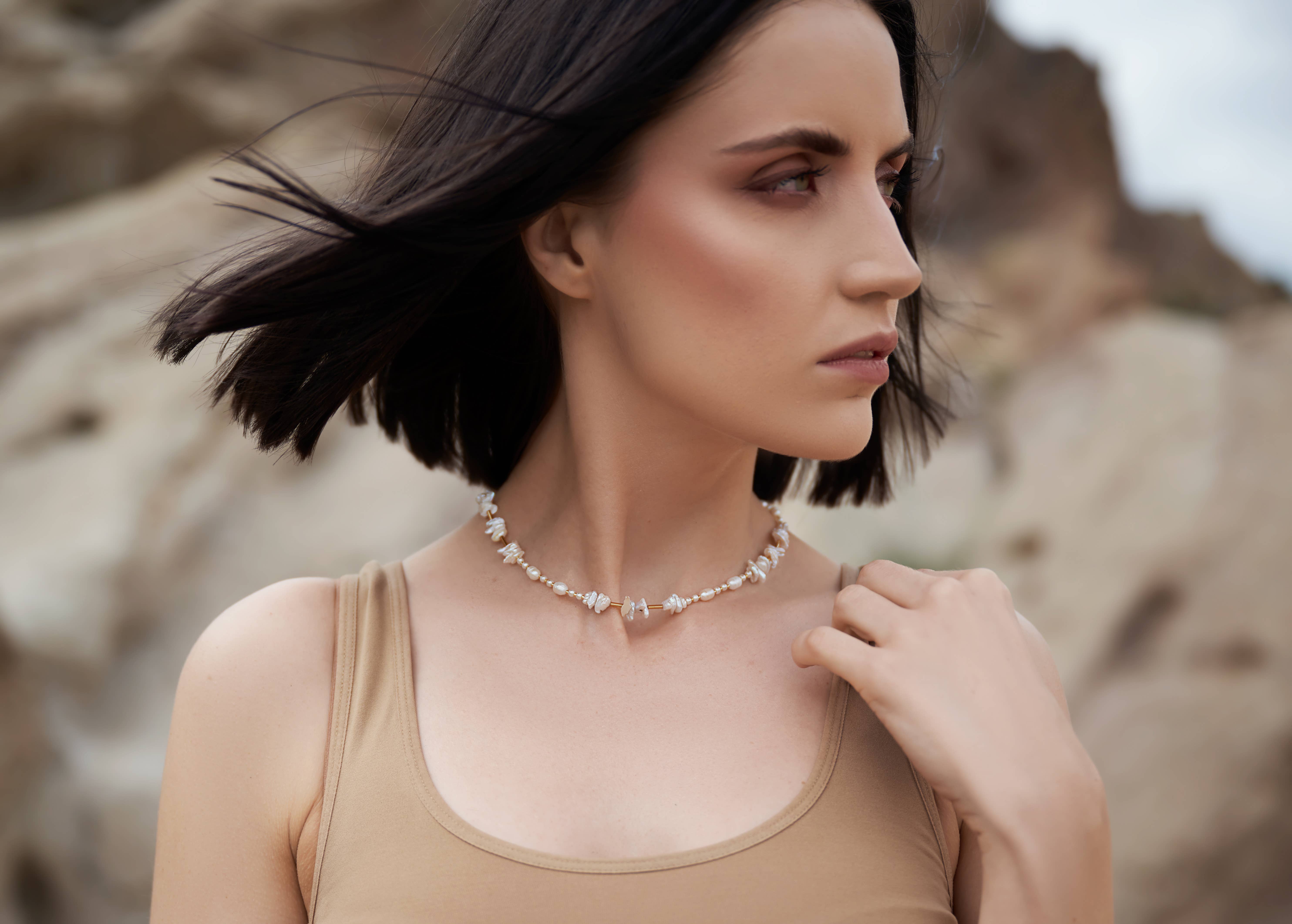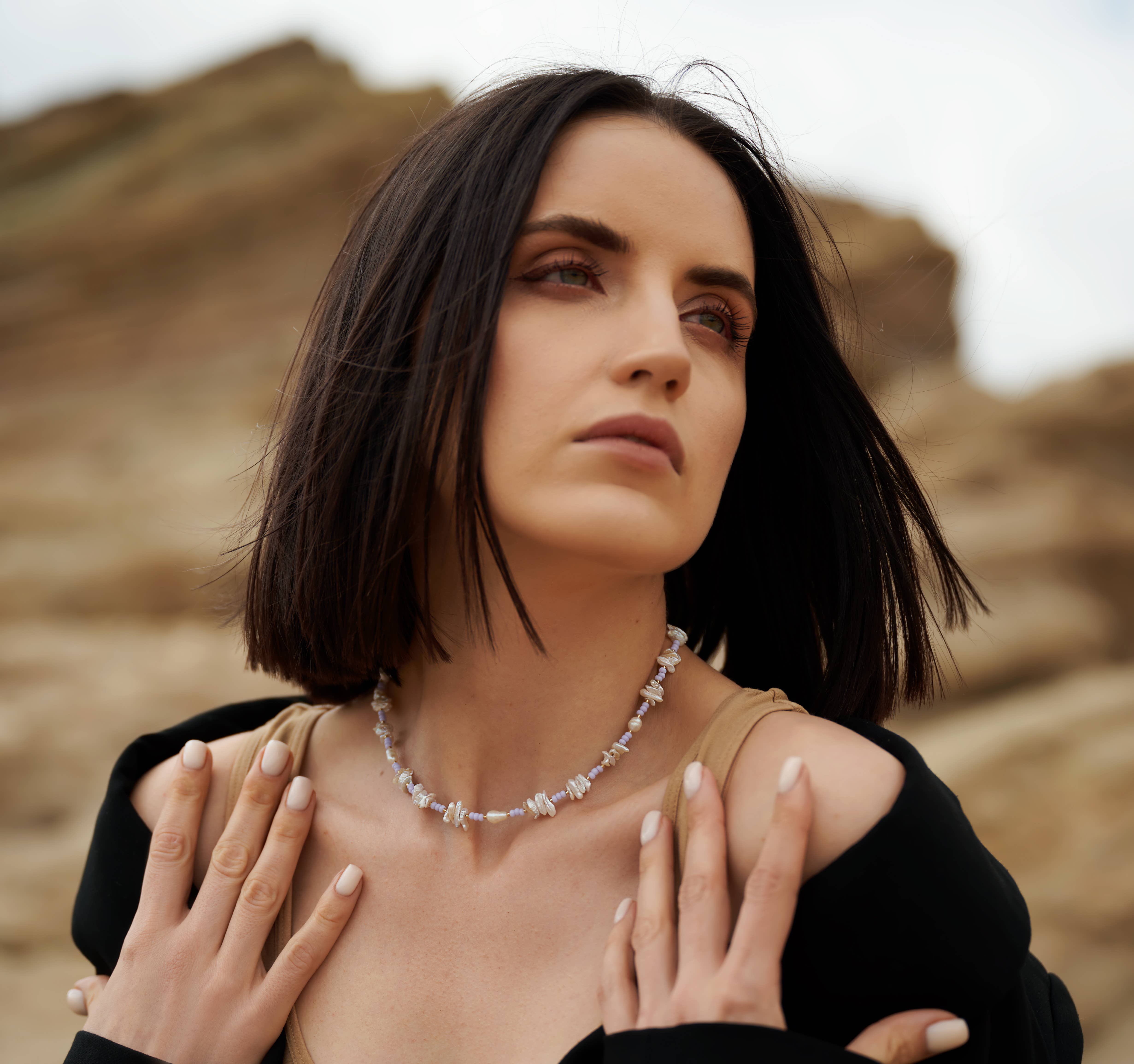 A delicate wave of pink for your seaside soul. The Pink Tide Necklace is a dreamy, beachy piece handcrafted with calming, coastal tones. This 16.5-inch necklace features soft pink and periwinkle sea sediment jasper heishi beads, glimmering faceted rose quartz briolettes, and a delicate freshwater pearl charm at the end of a 3-inch extender chain. Designed to sit gracefully at the collarbone, this necklace layers beautifully with gold chains or other coastal treasures. Finished with a gold plated lobster clasp and extender for adjustable wear, it's perfect for summer days, resort escapes, or simply bringing a bit of beachy bliss to everyday looks. Details: – 16.5" necklace with 3" extender (adjustable up to 19.5") – Pink & periwinkle sea sediment jasper heishi beads – Faceted rose quartz briolette beads – Freshwater pearl charm on extender – Gold plated lobster claw closure – Handmade with love A soft and sparkly shoreline for your neck.