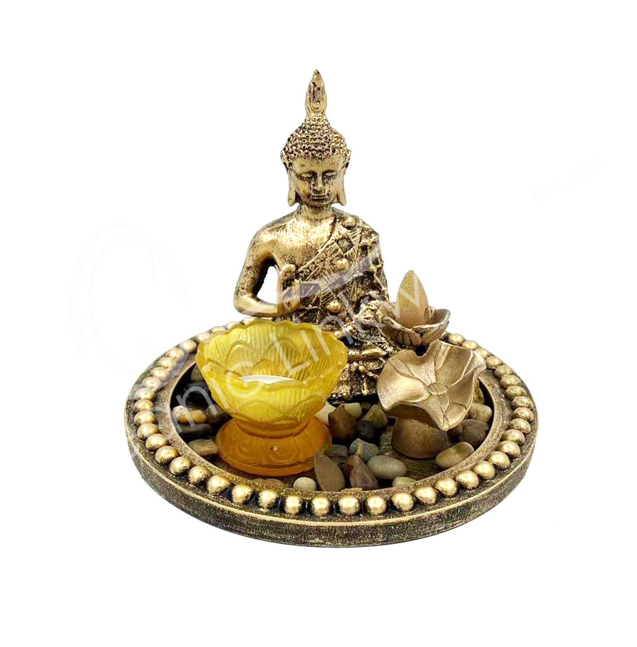 Elevate your home decor with this Tealight Holder - Buddha from Oceanic Linkways Inc. Measuring at 6.30"W x 5.90"D x 8.65"H, this beautifully crafted piece adds a spiritual touch to your living space. Ideal for incense, it perfectly complements any home fragrance collection. As a part of our commitment to high-quality home decor and spiritual gifts, this product has been meticulously sourced and designed to bring tranquility and peace into your home.