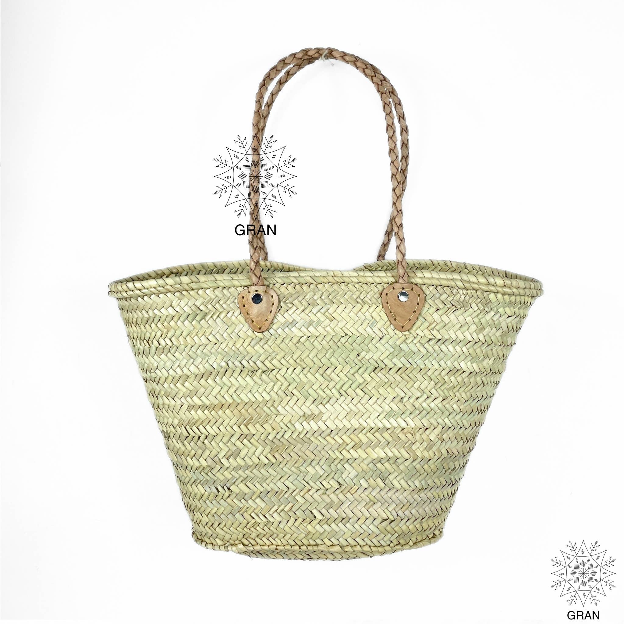 Experience the artisanal craftsmanship of Marrakech with our Handmade French Market Basket Backpack. Meticulously woven by skilled Moroccan artisans, this unique twist on the classic French Market Basket doubles as a stylish and practical backpack. Perfect for beach outings, bike rides, or shopping excursions, it features robust braided handles and adjustable leather straps for comfort and convenience. Key Features: - Versatile French Market Basket Backpack - Dimensions: Approximately 15"H x 16.5"W x 4.75"D - Handwoven from durable palm straw - Adjustable flat leather straps in three colors: Black, Brown, and Beige - Ideal for carrying essentials with ease and style - Handmade in Morocco, each piece is unique Elevate your everyday adventures with this charming and functional accessory, blending rustic charm with modern practicality. Choose from three handle colors to match your style and make a statement wherever you go