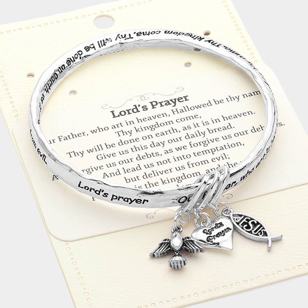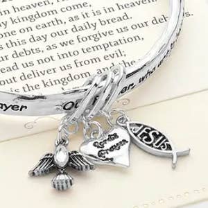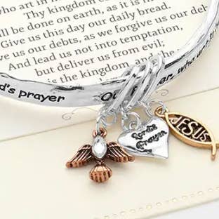 • Size : 0.25" H, 2.5" D • Charm Size : 1.3" L • Celebrate faith with this inspirational bracelet featuring engraved scripture and multiple charms, including a heart, cross, and dove. A meaningful accessory designed to inspire hope and strength, it makes a thoughtful gift for loved ones on religious occasions or as a daily reminder of faith. • Lead and Nickel Compliant
