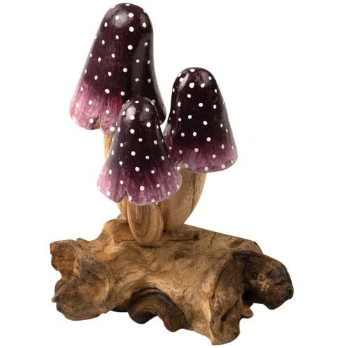 PURPLE 3 MUSHROOMS WOOD BASE APPROXIMATLY - 6.5HX3.2W