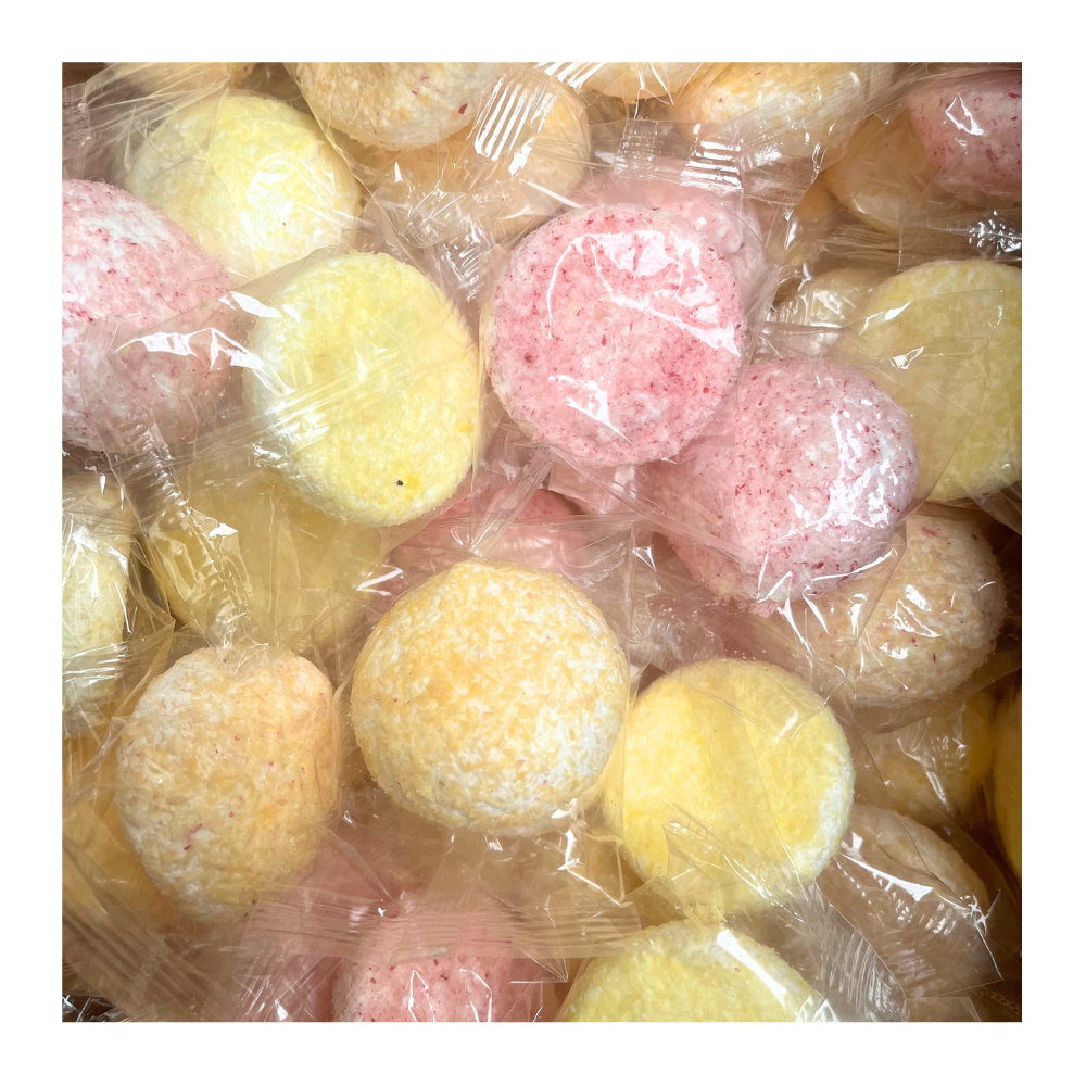 Coconut Meringue Balls Indulge in these delightful, light, and melt-in-your-mouth meringue balls, generously coated in shredded coconut for a perfect balance of sweetness and texture. Each ball is carefully individually wrapped to maintain freshness and make them easy to enjoy anytime, whether as a treat for yourself or to share with friends and family.