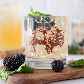 Raise a toast to craftsmanship and character. Our Buffalo Whiskey Glasses are the perfect blend of rugged Western style and everyday durability, designed for anyone who loves a sip of bourbon, scotch, or an old-fashioned served with a side of artistry. Each glass features a detailed hand-drawn buffalo illustration, screen-printed and oven-cured right here in Denver, Colorado. The result? A design that won’t wash off, peel, or fade — no matter how many rounds you pour or dishwasher cycles you run. From your evening whiskey ritual to hosting friends with cocktails, this 11 oz double old-fashioned glass is built to be as reliable as it is eye-catching. With a sturdy base and a classic shape, it’s a barware essential that customers will reach for night after night. Product Details • Capacity: 11 oz (ideal for whiskey, bourbon, scotch, cocktails, or neat pours) • Dimensions: 3.5" tall × 3.25" diameter • Material: Durable, high-quality glass • Design: Hand-screen-printed buffalo illustration in brown ink • Care: Top-rack dishwasher safe for effortless cleanup • Origin: Designed, printed, and packaged by hand in Denver, CO • Packaging: Ships in multi-unit protective packs (not individually boxed) Why You’ll Love It • Lasting design: Our oven-cured process permanently bonds the ink to the glass, so the buffalo design won’t chip, fade, or peel. • Handmade artistry: Every illustration starts as a pen-and-paper drawing by founders Kaelin and Richard, giving each glass a true artisan touch. • Versatile barware: Perfectly sized for whiskey, cocktails, or even an evening glass of iced tea or soda. • Durable & functional: Dishwasher-safe and sturdy enough for everyday use while still looking refined on a bar cart. • Gift-ready: A thoughtful option for birthdays, holidays, weddings, corporate gifting, or anyone who loves rustic, Western-inspired decor. Perfect For • Stocking unique, handcrafted barware in your shop • Customers who love Western, rustic, or nature-inspired designs • Whiskey lovers, bourbon drinkers, and cocktail enthusiasts • Memorable corporate gifts or groomsmen presents • Adding authentic handmade charm to bar carts, man caves, and kitchen shelves Counter Couture has been creating small-batch screen-printed home goods and gifts since 2011. Our mission? To bring a little handmade magic into everyday rituals — from morning coffee to evening cocktails. Each Buffalo Whiskey Glass is a piece of functional art that celebrates durability, design, and a touch of rugged charm. Bring the spirit of the West to your shelves and give your customers a reason to raise their glass in style.