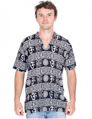 Short sleeve Kurta with Mao collar and buttons on the chest Composition: 100% Fine Cotton Available: L and XL Length: size L measures 75 cm Kimago Bohemian clothing, boho dresses, hippie chic pants, ethnic ponchos, women's jumpsuits, cotton jackets and a wide variety of ethnic bags, hippie shoulder bags, hemp backpacks, cases and purses Handmade decorative products, table runners, tapestries, statues of Hindu gods, incense holders Ethnic costume jewelry, boho earrings, necklaces from India, bracelets made with mineralsm, bone necklaces, crystal pendants and mineral pendants Tibetan bowls, mineral pendulums, amethyst, rose quartz, tiger's eye, 7 chakras, Tibetan flags, incense, quartz crystal obelisks