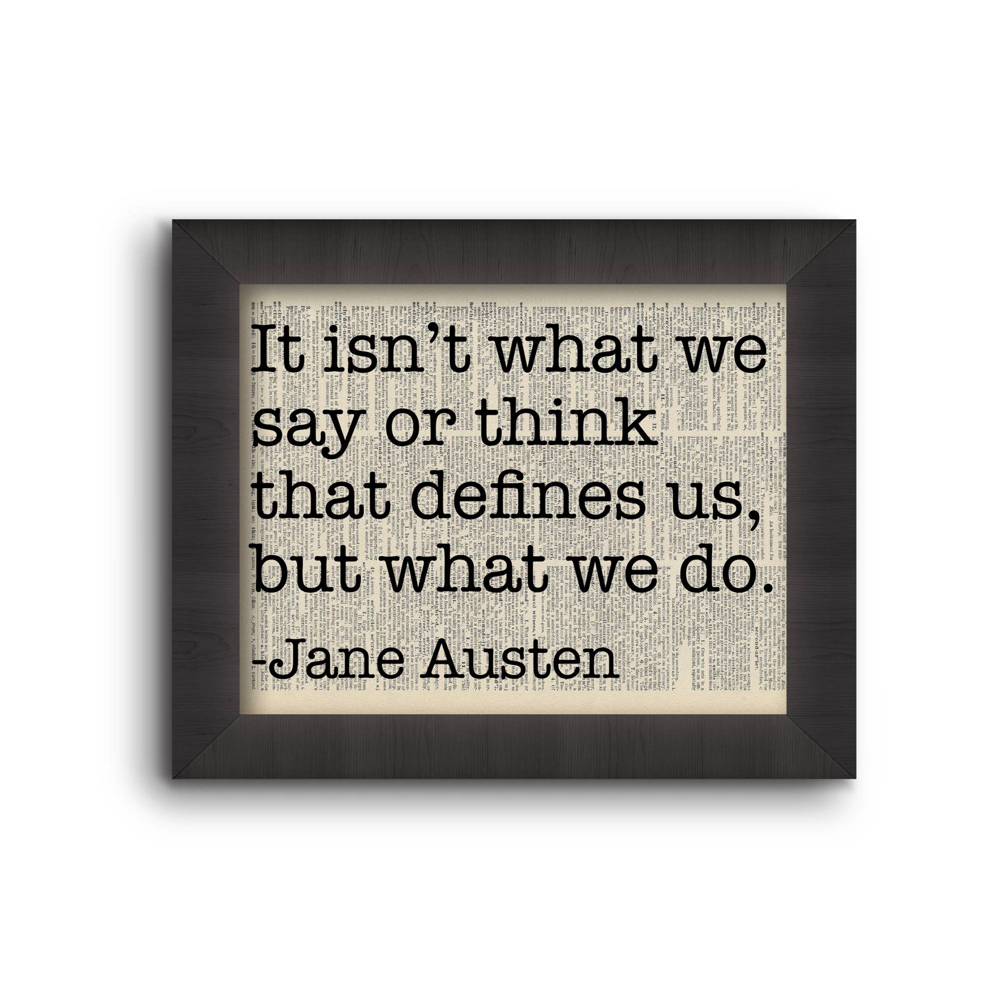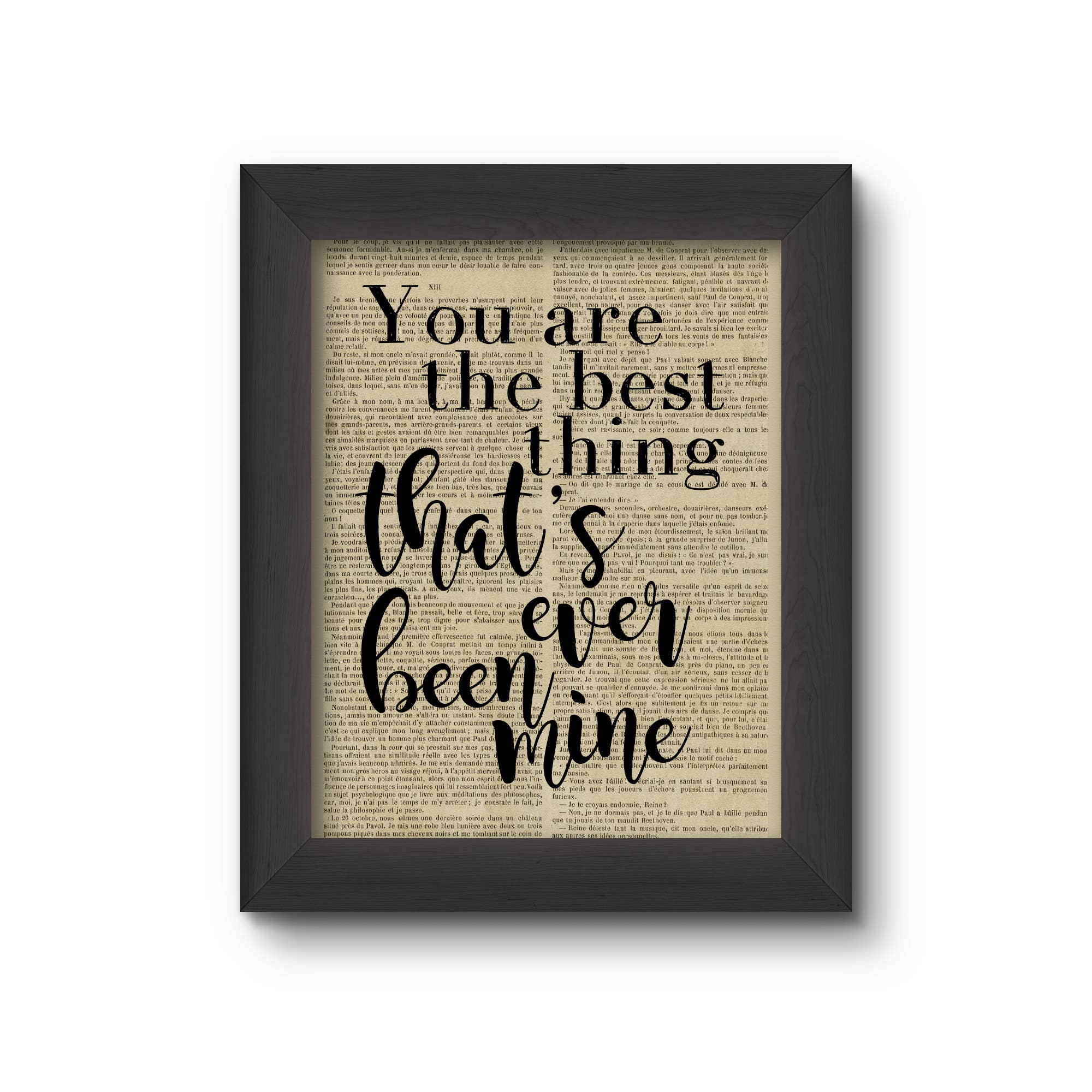 We love to give new life to old books with messages of hope, love and strength. We up-cycle the beautiful, weathered pages to create unique prints that glow with the patina of another age, so no two are alike. The result is a beautiful and interesting home decor print. Definitely a conversation starter! Our prints are created using vintage books rescued from library recycling. The prints you purchase will be of the image you select, the vintage book page it is printed on will be different. We offer unframed prints that are ready for retail. Each print is carefully packaged in a resealable cellophane sleeve with rigid chipboard backing. The back of each packaged print features a "story sticker" that explains how and why we do what we do. We also offer framed prints. Each book page is carefully framed in a sturdy solid wooden black frame that is ready to hang on a wall or sit on a shelf. The back of each frame features our "story sticker" which explains how and why we do what we do