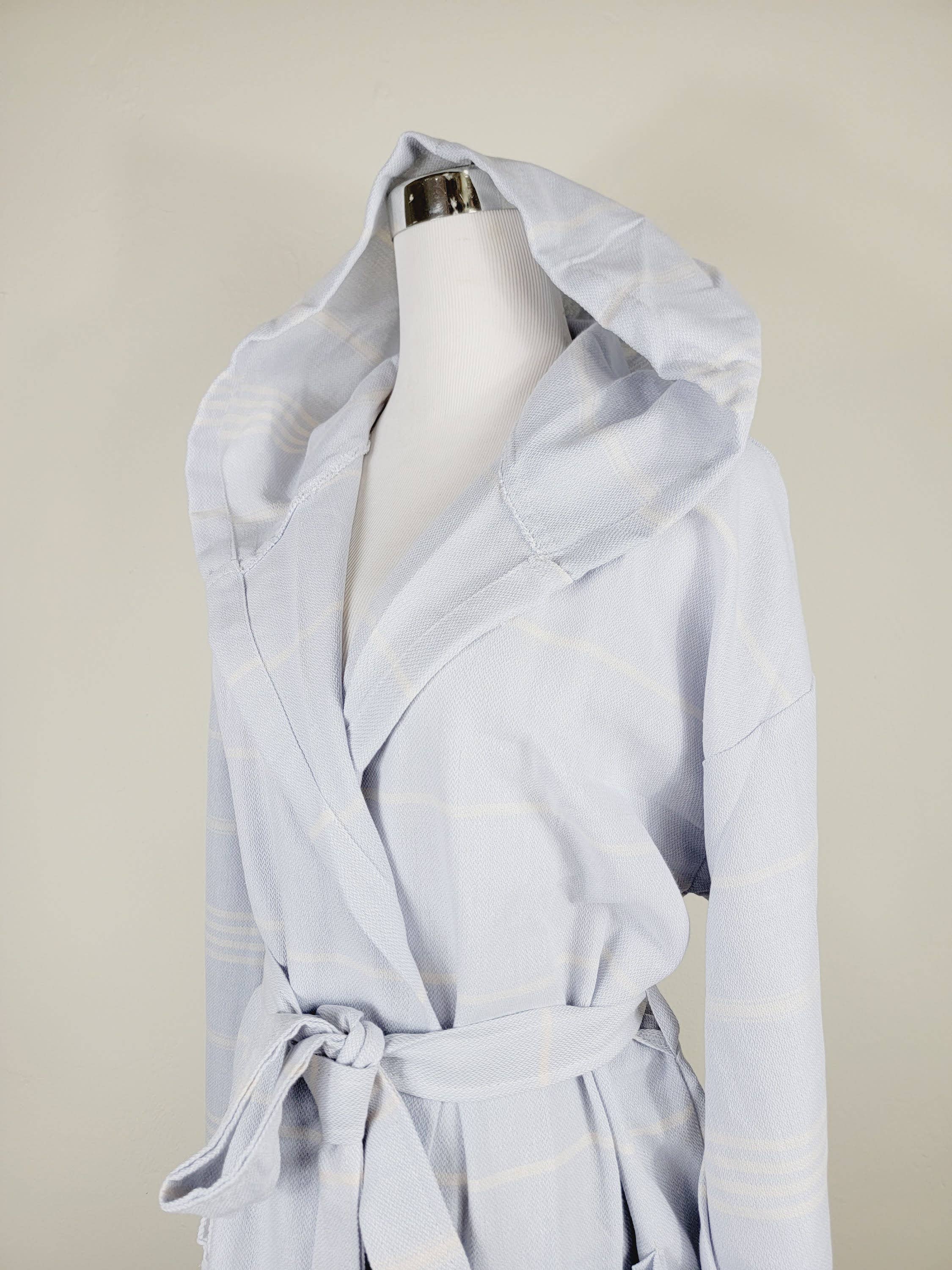 Color: GRAY Crafted from 100% Turkish cotton (Turkish towels), this robe is designed for everyday comfort and ease. It features a relaxed fit with a waist tie and deep pocket, offering both functionality and softness. Ideal for all-day wear. 100 % Organic Turkish Cotton MEDIUM - LARGE - XLARGE BUST : 44 Inch - 58 Inch - 60 Inch HIPS : 45 Inch - 59 Inch - 61 Inch BODY LENGTH : 42 Inch - 46 Inch - 48 Inch