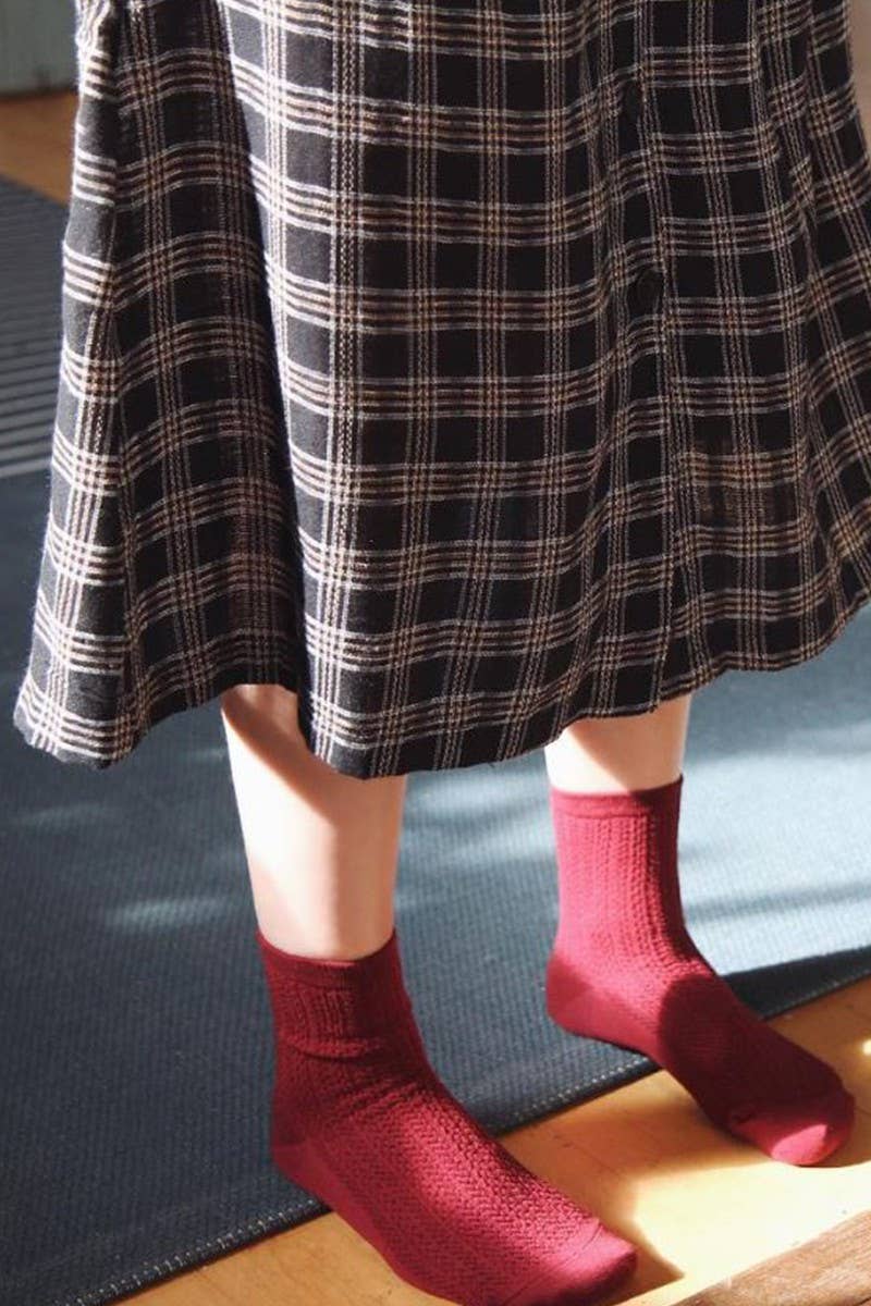 "Women's Wool Blend Crew Length Socks" -4 assorted colors in a pack (Charcoal,Camel,Burgundy,Black) -Wool blend crew length daily socks -1 Pack (4 Assorted colors as pictures) -Unit Price: $3 -Pre Pack Price: $12 * Size-Medium/Shoe size 6-9, socks size 9-11 *