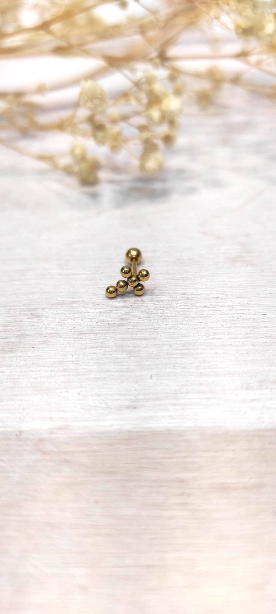 Stainless steel ear piercing, water-resistant.