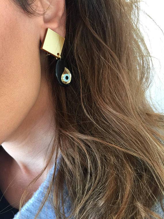 Evil Eye Earrings Black & Gold