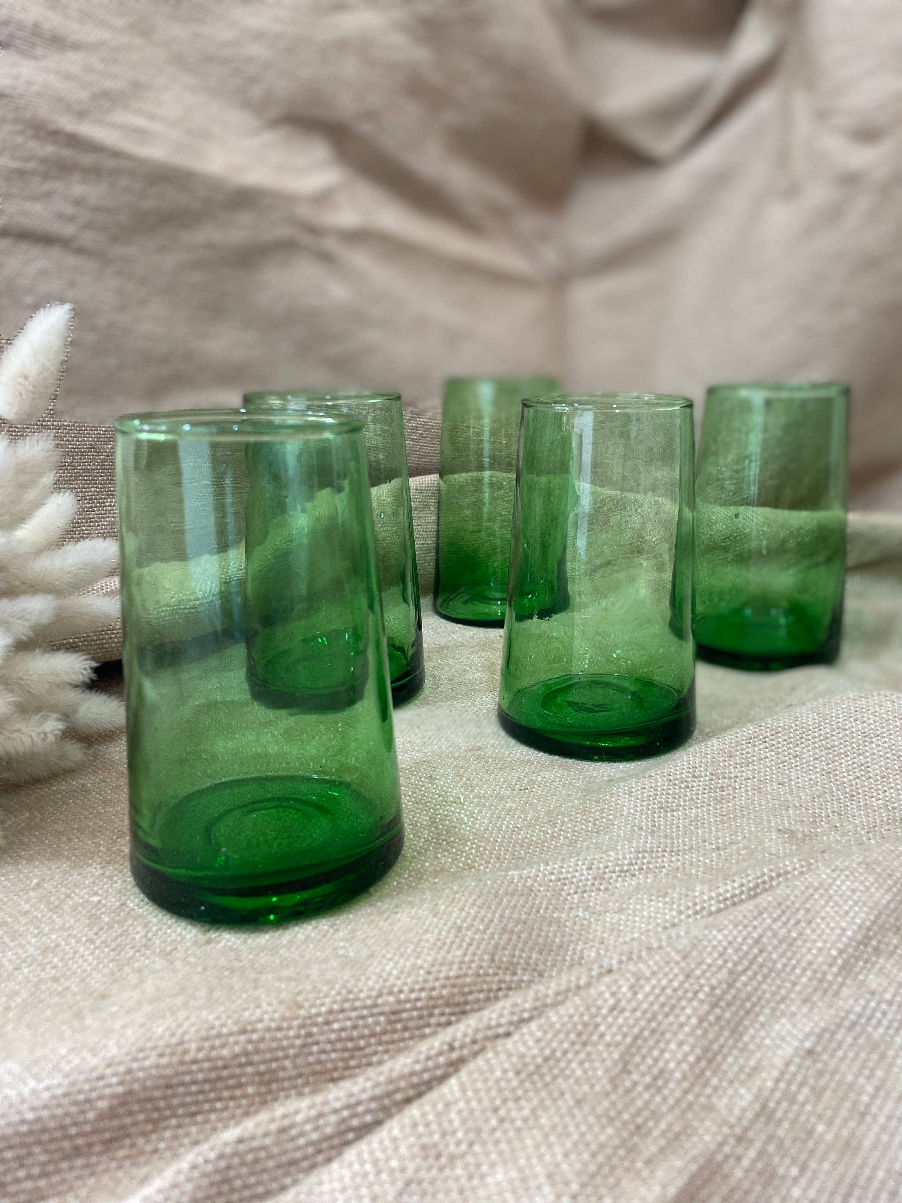 Discover our entire selection of glasses from the last wind tunnel still active in the Maghreb, the Beldi wind tunnel. These glasses are glasses that come from recycling. The glass is reworked by being blown to give it a second life. The color of the glass will not tarnish over time and washing as it is the original color of the glass. Don't worry, these glasses are dishwasher safe! Each glass is molded on the same model but they are of course all different, which is their charm and authenticity. We also offer them in green and blue, there is something for everyone. We offer glasses in 3 dimensions.