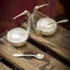 Stork Salt and Pepper Cellar with Glass Inserts and Silver Spoons Dimensions: (5.5 L x 2.25 W x 3.25" H)