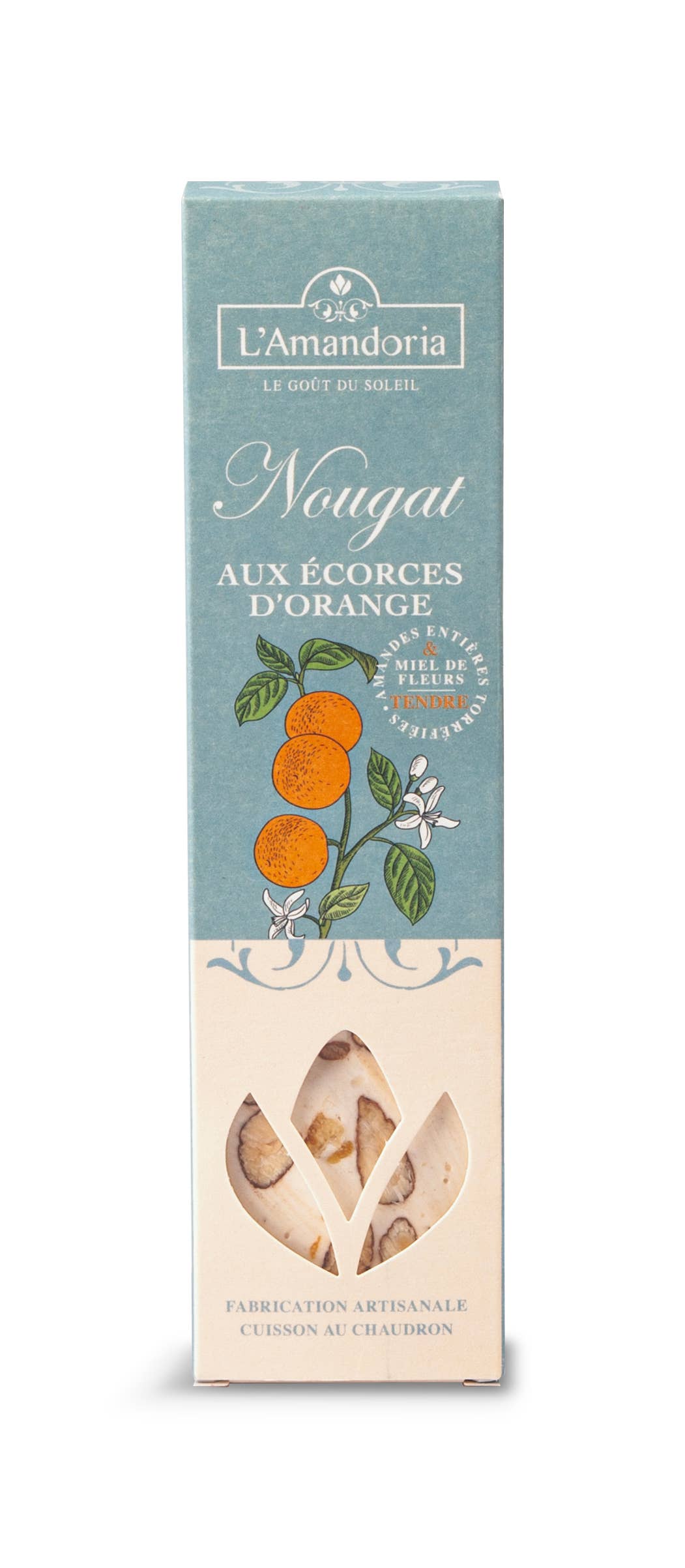 This 100g white nougat bar embodies simplicity and authenticity, with a smooth and melting texture. A true delight for lovers of traditional confections. And for even more delight, our nougats are made with French variety almonds, French honey, and cooked the old-fashioned way in a copper cauldron.
