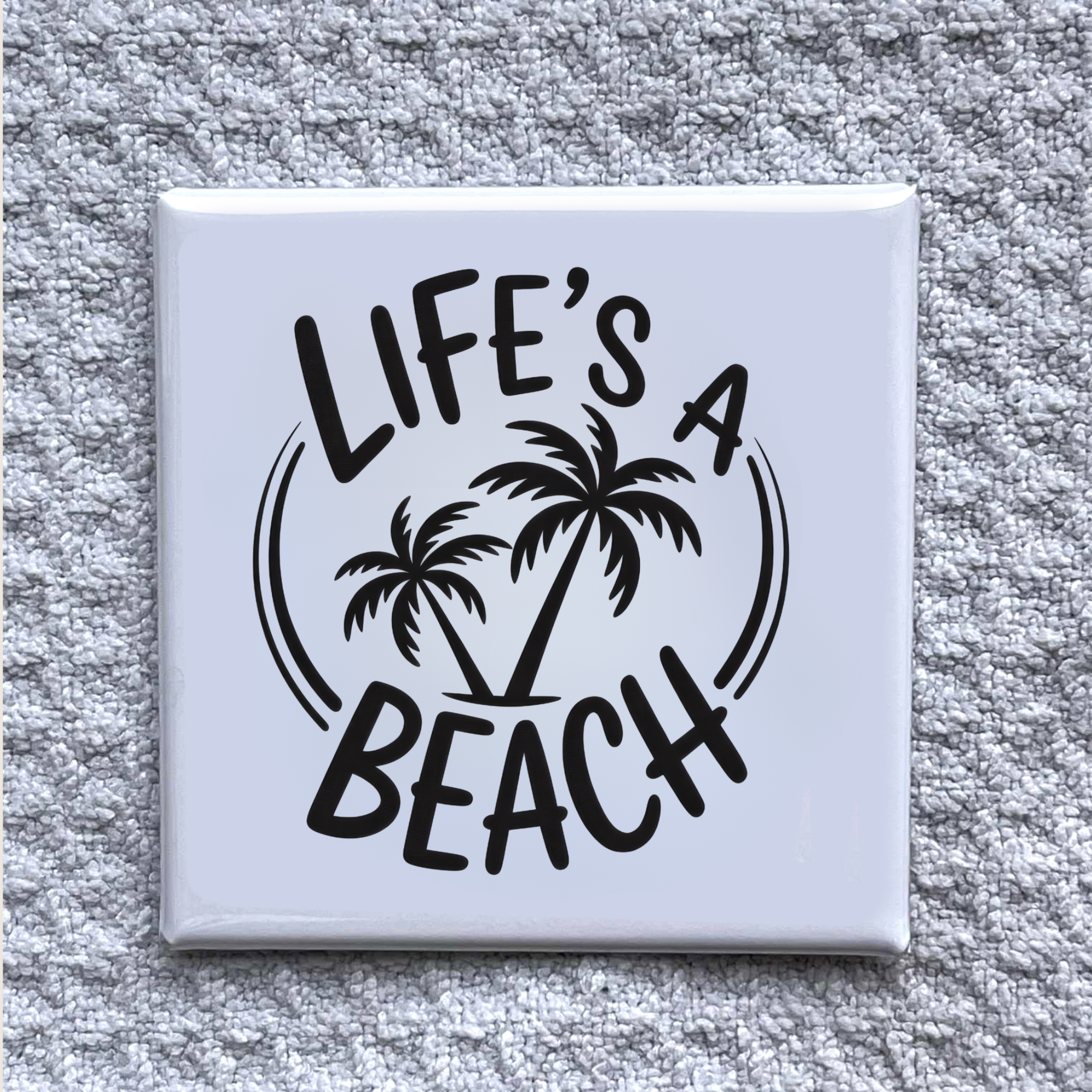 This 2x2" square magnet features the saying "Life is a beach" and is handmade in the USA with high-quality materials and a Laminated surface for easy cleaning. Each one features original, fun designs and is strong enough to hold up to 6 sheets of paper. They’re perfect for party favors, small gifts, or decorating fridges, lockers, and more. Handmade with Aloha—each magnet is unique! Note: Colors may vary slightly by screen. Videos are for general reference and may not show the exact design/style you receive. Handmade / Fridge Magnet / Stocking Stuffer / Birthday Gift / Gift Under $5 / Island Inspired Fridge Décor / Custom Magnet / Just Because Gift / Christmas 2025 / Souvenirs / Retro Magnets