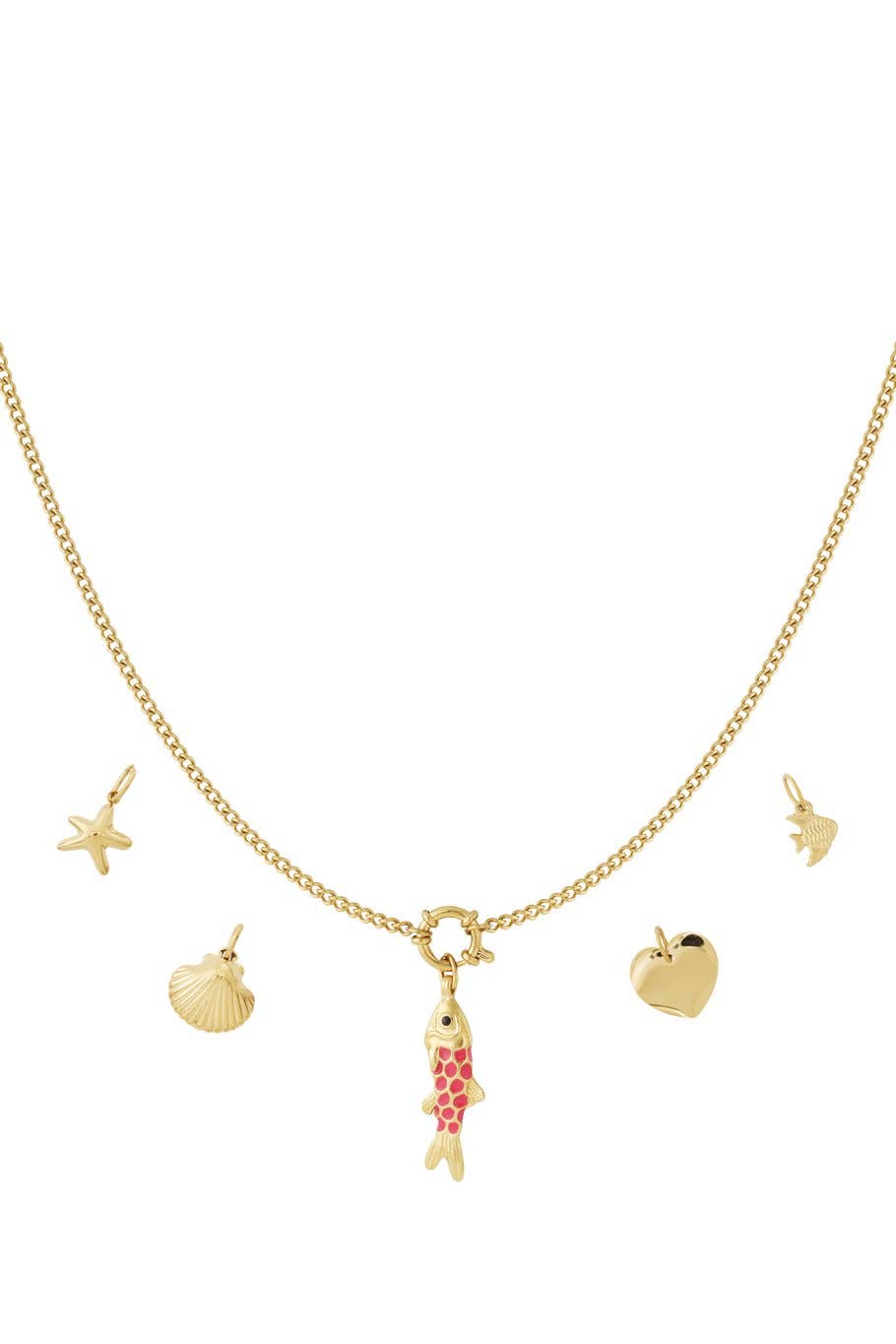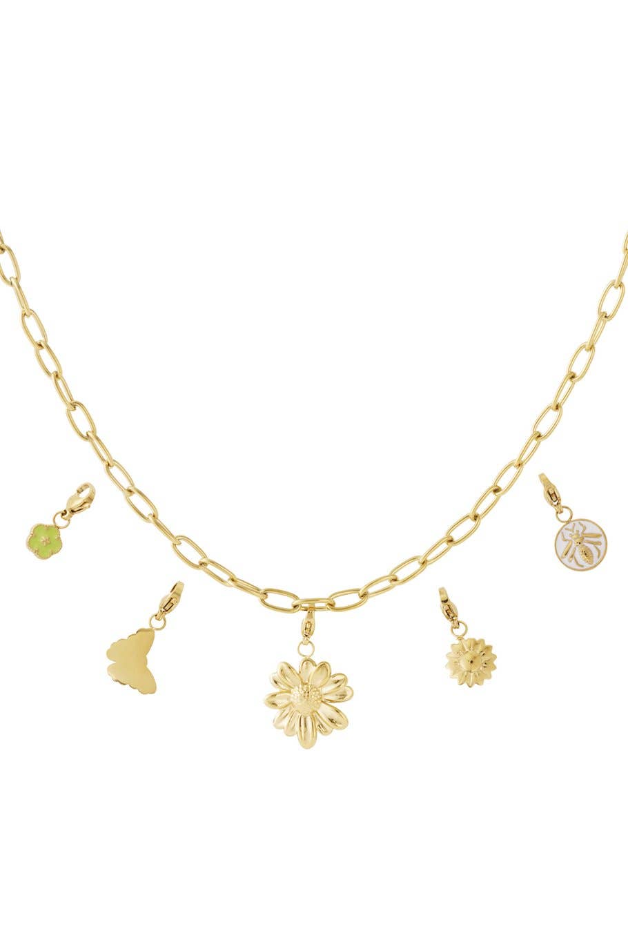 Do you want to make your own jewelry but are bad at choosing? Then this Do It Yourself (DIY) package is for you or your store. The set consists of 1 stainless steel necklace with 5 stainless steel charms. The charms still need to be hung on the necklace, and this can be done entirely in your own style. The charms also have hangers attached, making it easy to hang the charm on the necklace.