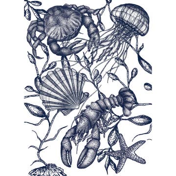 There's something about our Octopus that everyone loves, It looks as though it's dancing across the tea towel. Digitally printed onto a soft linen & cotton mix, this will be sure to brighten up your coastal kitchen. Our collection of beautifully illustrated sea creatures and crustaceans will transport you straight to the ocean's edge. ||| Details *** * Digitally printed navy illustration * Hanging loop in top left hand corner * Wash up to 30°C * 48% Cotton/52% Linen === Size *** * 50 cm x 70 cm