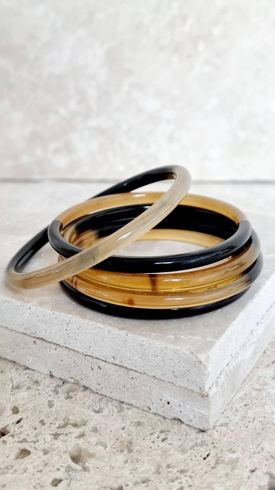 The bracelets are handcrafted by artisans from buffalo horn. Each bracelet is a unique piece. As this product is natural, the shades vary from one piece to another. Size approximately 6.3 - 6.5 cm. To protect your jewelry, avoid contact with water/perfume. For your information: the horns are collected in an eco-friendly manner.