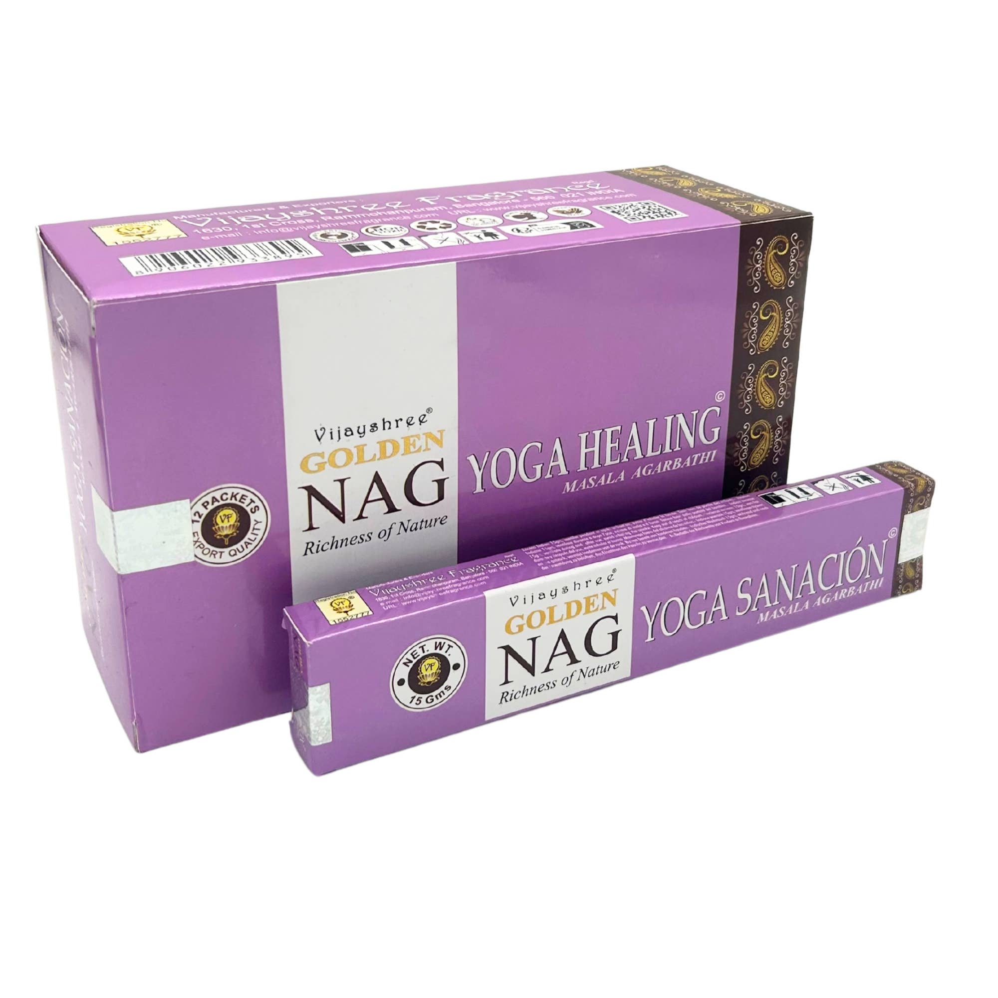 Nag Champa incense is one of the most popular and appreciated worldwide, known for its distinctive and enveloping aroma. These incenses are hand-rolled in India with pure extracts and the finest perfumed oils. This scent will fill your home or store with a captivating fragrance and create a wonderful atmosphere. The best spices, herbs, floral extracts, exotic oils, and other natural ingredients are carefully selected and skillfully blended to create a positive influence on the environment. We offer high-quality products that are perfect for creating an atmosphere of peace and relaxation, whether in homes, meditation centers, gift shops, or spas. Its use is ideal for meditation, yoga practice, or simply to purify the air and create a cozy atmosphere. Hand-rolled in India. - Contains 15 grams of incense (approx. 15 sticks) or 10 cones (12 boxes) - Burning time: approx. 30 min