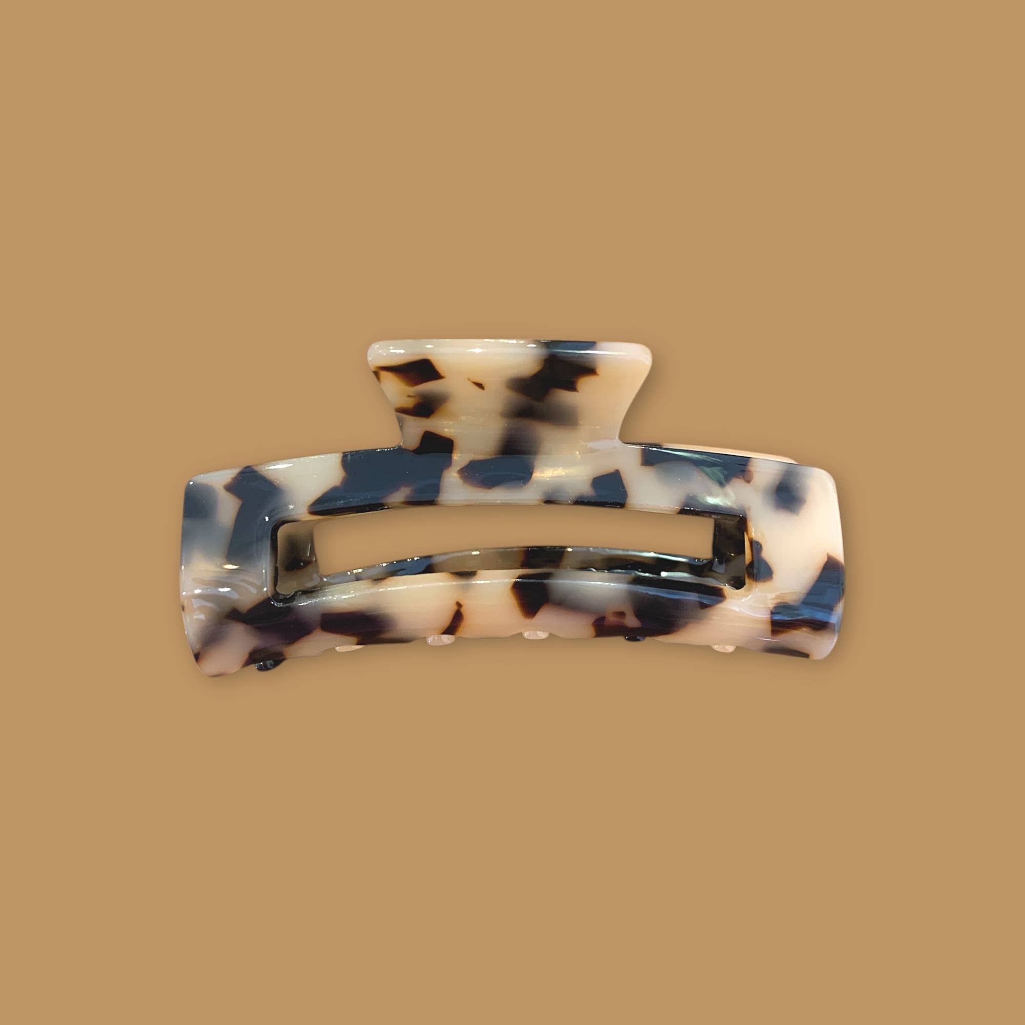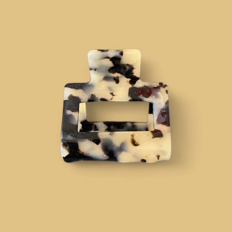 We love this cream pearl print hair clip. Its pearly pattern adds a touch of softness to your hairstyle. Perfect for structuring a bun, securing a half-up style, or simply keeping hair in place, this clip is a versatile accessory that suits all occasions, whether for a daily look or a more polished outfit. Material: Cellulose acetate Dimensions: 5 x 4.5 cm
