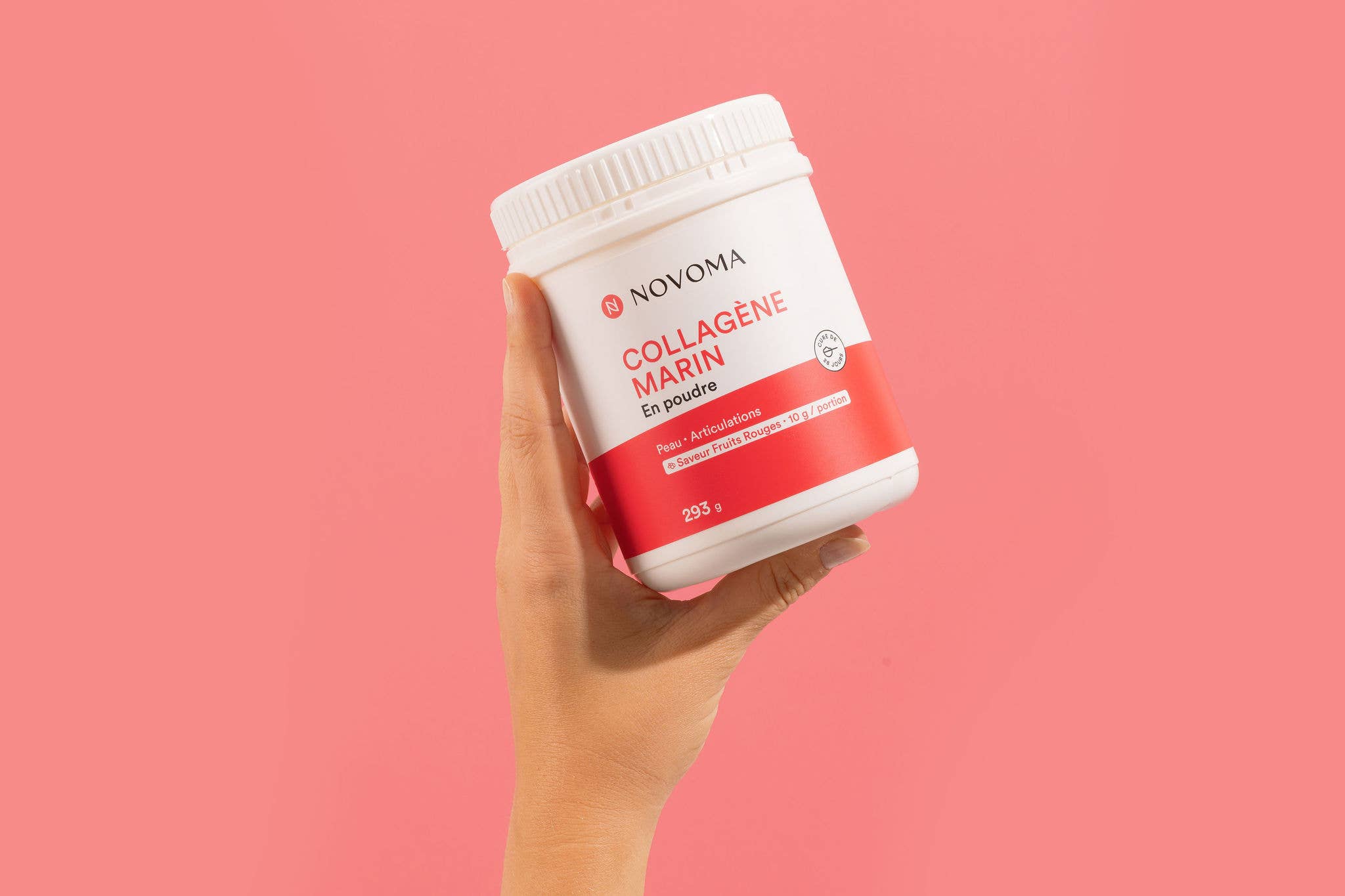 Product Highlights: ✓ Hydrolyzed Marine Collagen Type I and III Naticol® ✓ Promotes skin beauty and joint health ✓ 290g jar (28-day course) ✓ Measuring spoon included ✓ Made in France. Description and Benefits: Novoma's Marine Collagen powder is a collagen supplement designed to enhance skin beauty (hydration, elasticity) and joint flexibility. It combines 2 patented types of collagen (type I and III) sourced from responsible fishing. With a low molecular weight, the collagen peptides are hydrolyzed for optimal absorption. Each daily dose provides 10 g of marine collagen Naticol® (type I and III), and 150 mg of vitamin C (sodium ascorbate) which contributes to collagen production.