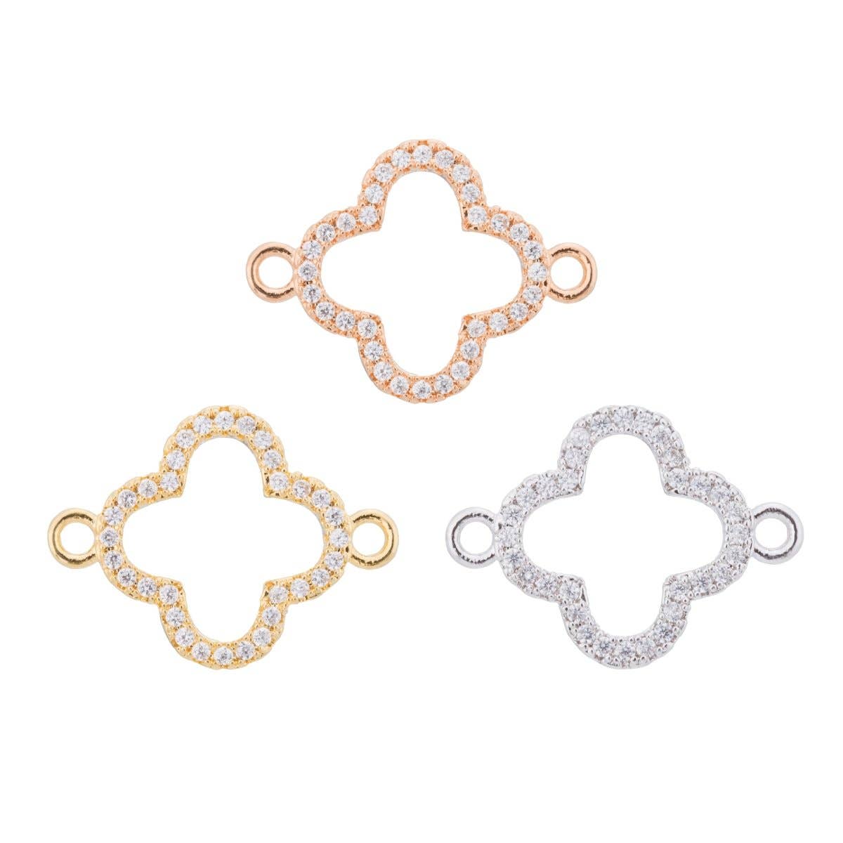 Wholesale 14K Gold filled Clover Connectors, Lucky Charm Connector Cubic Clover Jewelry Craft Supply Link Connector Shamrock Bracelet Necklace F-603