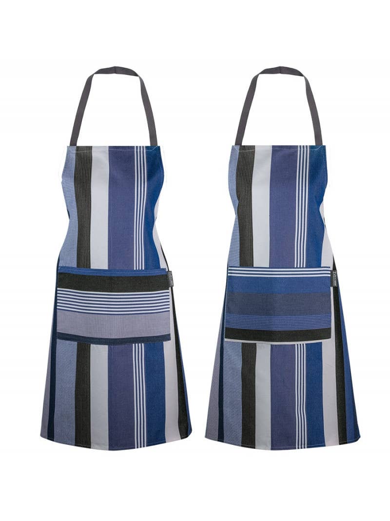 Treat yourself to a set of Beaurivage kitchen towels and adorn your kitchen with their beautiful blue and ink striped patterns. Towels sewn from 100% organic cotton fabric. To be matched with all models from the Beaurivage collection: pot holder, bread basket, apron, tablecloth, or even napkin. As the towel is made in the width of the fabric (160cm), its pattern may vary. Pattern: Stripes Care instructions: Machine wash 60° Composition: 100% Cotton