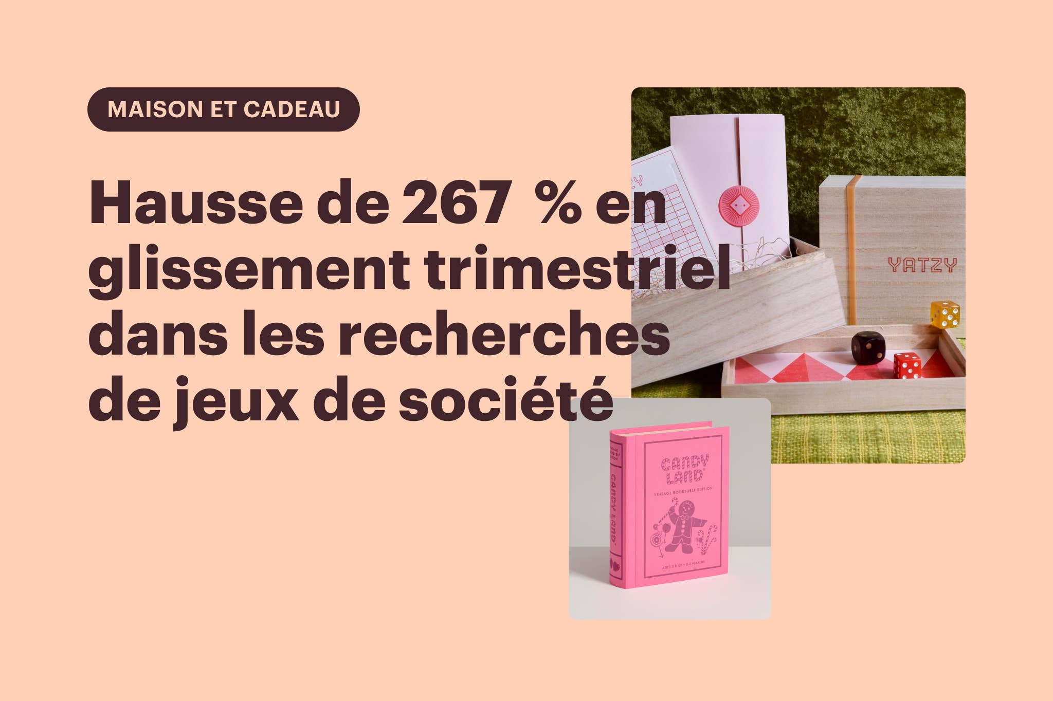 Sur Faire, les recherches de jeux de société ont augmenté de 267 % entre janvier et février, et les recherches d’échecs et de Monopoly sont également en hausse (26 % et 195 %, respectivement).