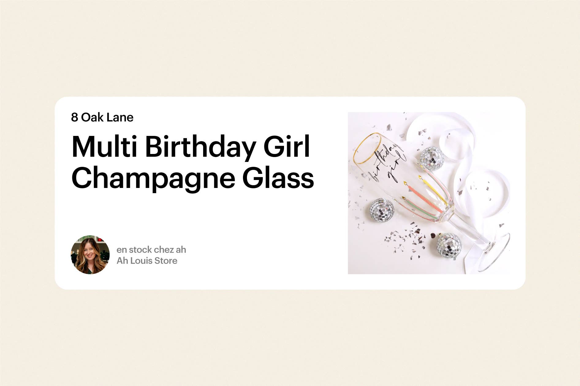8 Oak Lane propose une sélection de produits pour la cuisine et l’art de la table, d’accessoires pour la maison, de bougies, de bougeoirs et d’autres articles de décoration d’intérieur « inspirés par tout ce qui est tendance, malin et créatif ». Emily adore la flûte à champagne « Birthday Girl », car elle est parfaite pour rendre une fête d’anniversaire encore plus spéciale et son prix est très avantageux.