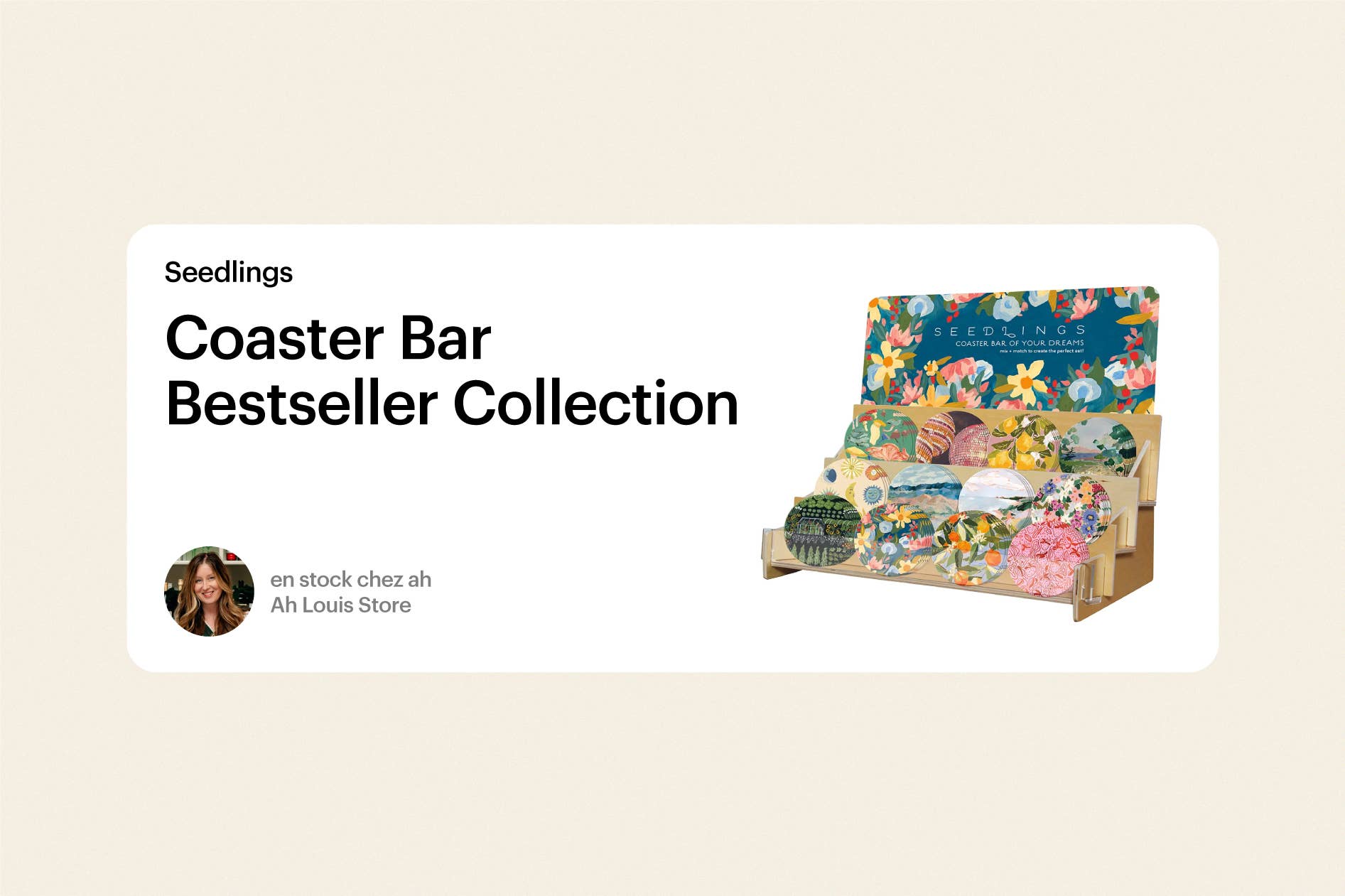 Lorsque Seedlings a lancé sa gamme de sous-verre, Emily s’est empressé de se procurer toute la collection et aujourd’hui, le magasin dispose en permanence de deux ou trois caisses pleines. « C’est l’un des produits phares de la boutique et j’ai du mal à le garder en stock, car tout part très vite », déclare Emily. Au bar à sous-verre Seedlings, les clients peuvent composer un lot de quatre ou de huit pièces, qui seront attachées à l’ancienne avec une ficelle nouée. « À 3 $ l’unité, le prix est imbattable et les sous-verre sont vraiment amusants », indique Emily.