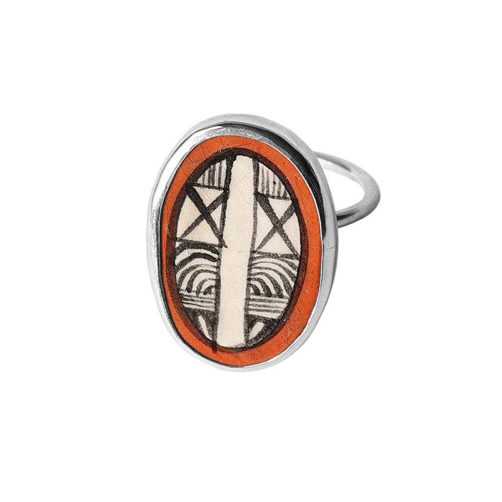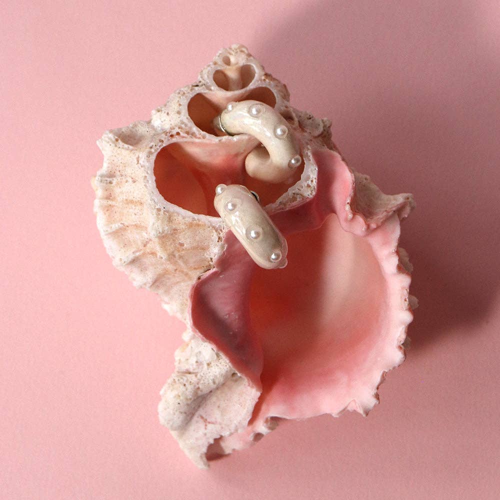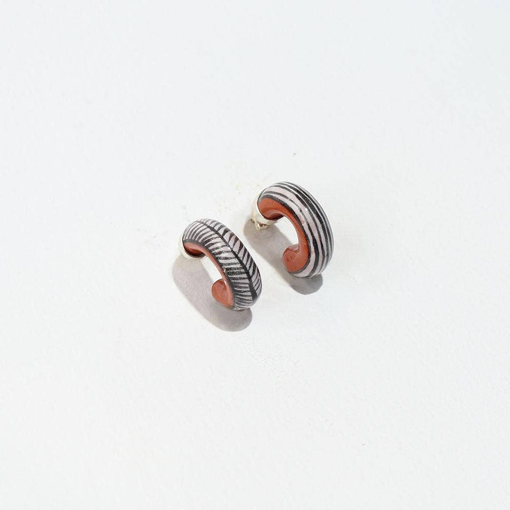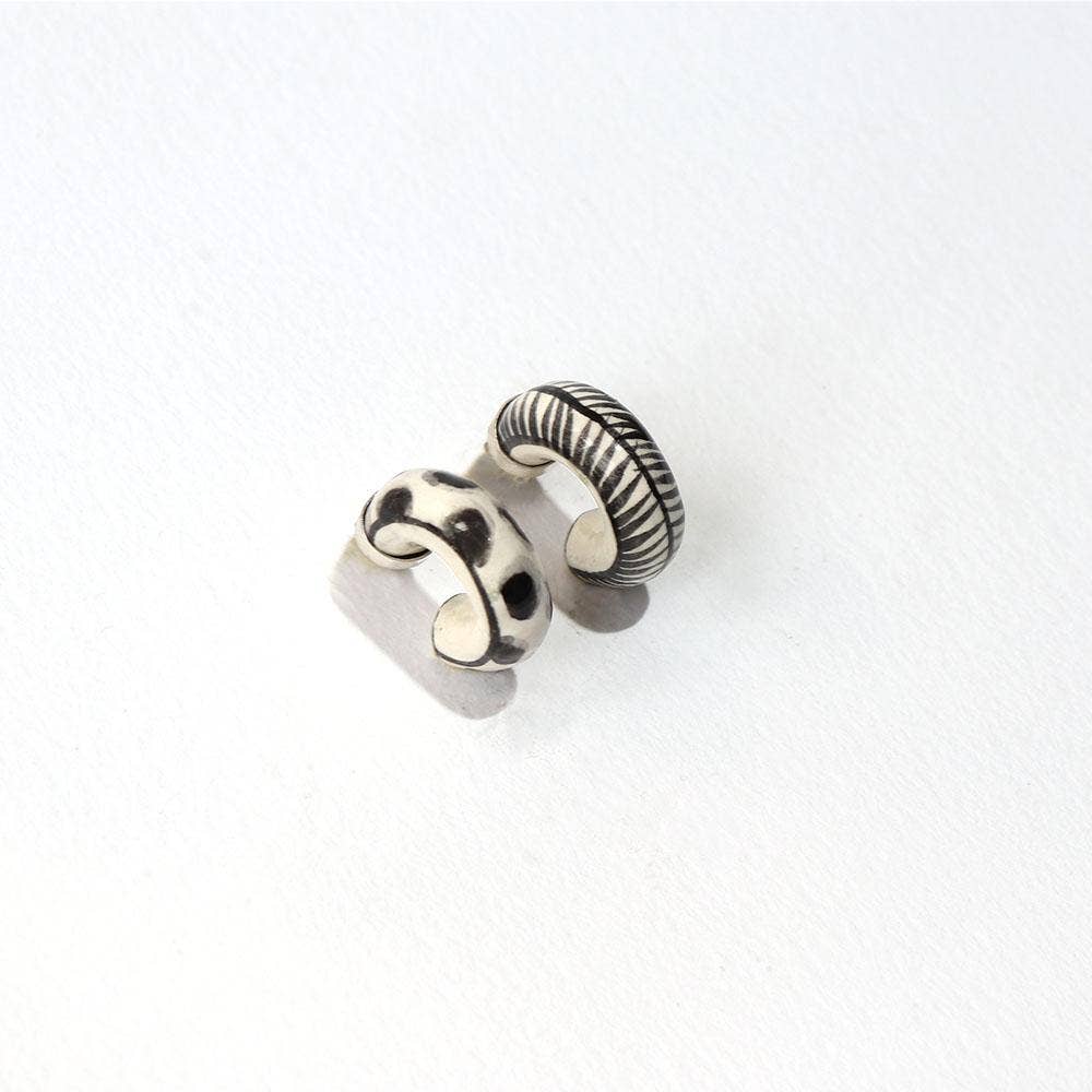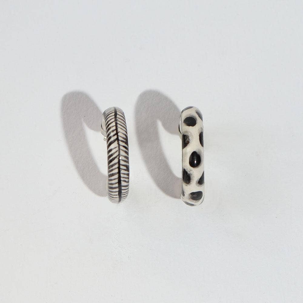 Hechizo (he-chee-so) signifie un sort ou un charme magique en espagnol. Combinant céramique, métaux et textiles dans des objets faits pour la décoration, les pièces Hechizo sont les souvenirs d'un intérêt profond pour les matériaux et les procédés. Hali Emminger, la créatrice et fondatrice, s'inspire des traditions mondiales de la parure, de la poterie et du costume. Les créations Hechizo rehaussent des matériaux un peu moins précieux tels que des cabochons en céramique sertis comme des pierres précieuses, ce qui suggère que la valeur de la pièce réside dans l'artisanat lui-même. Qu'elles vous rappellent votre propre pouvoir de manifestation ou même votre signe astrologique, les pièces Hechizo sont faites pour être portées comme des talismans. Chaque pièce est imprégnée de narration et chacune est un petit trésor complexe aussi dynamique que vous. La collection Hechizo est produite dans un studio ensoleillé rempli de plantes à Richmond, en Virginie.