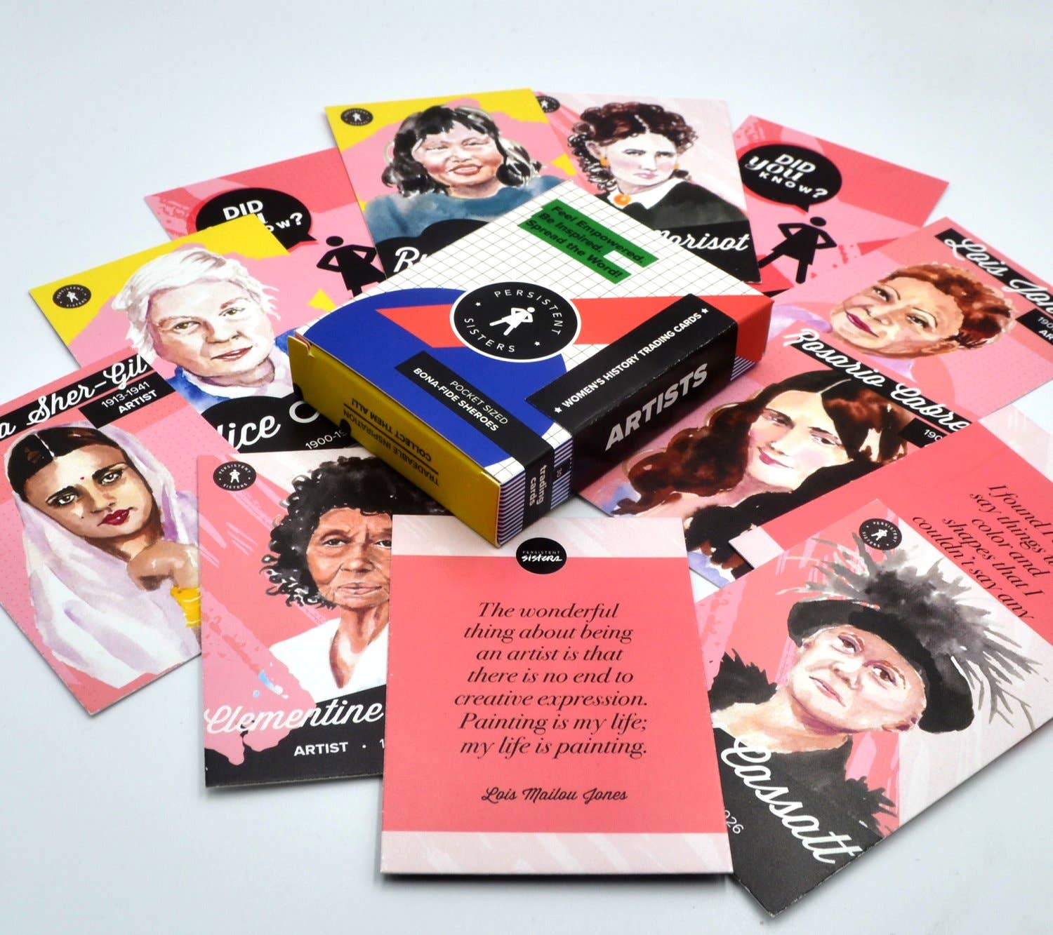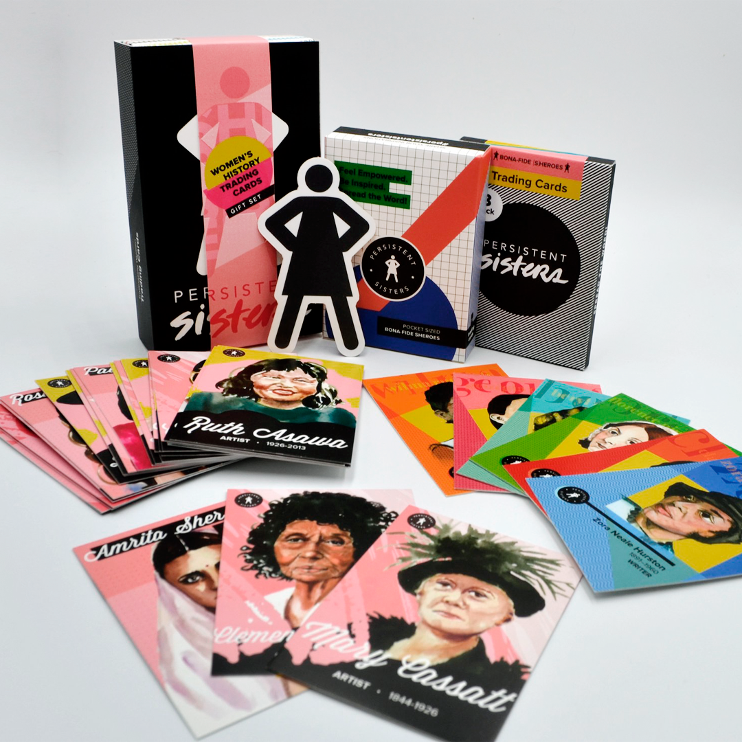 Les cartes à collectionner Persistent Sisters sont la création de l'artiste Ellen Schaeffer, qui cherchait un moyen de partager avec sa fille les histoires de femmes pionnières tout au long de l'histoire. Alors qu'elle a commencé à créer les cartes à collectionner, elle s'est rendu compte qu'il s'agissait d'un format attrayant, accessible et souple qui pouvait autonomiser toutes les jeunes femmes. Persistent Sisters est maintenant un recueil croissant d'histoires qui célèbrent l'audace des femmes remarquables, qui font avancer leur élan avec de nouvelles générations de sœurs persistantes partout dans le monde. Avec une vaste bibliothèque de femmes accomplies couvrant les domaines de la science, de l'exploration, de l'écriture, des mathématiques, de l'art et plus encore, les cartes à collectionner Persistent Sisters peuvent inspirer toutes les filles à trouver leur passion et à en faire une réalité. Ils PEUVENT être ce qu'ils peuvent voir !