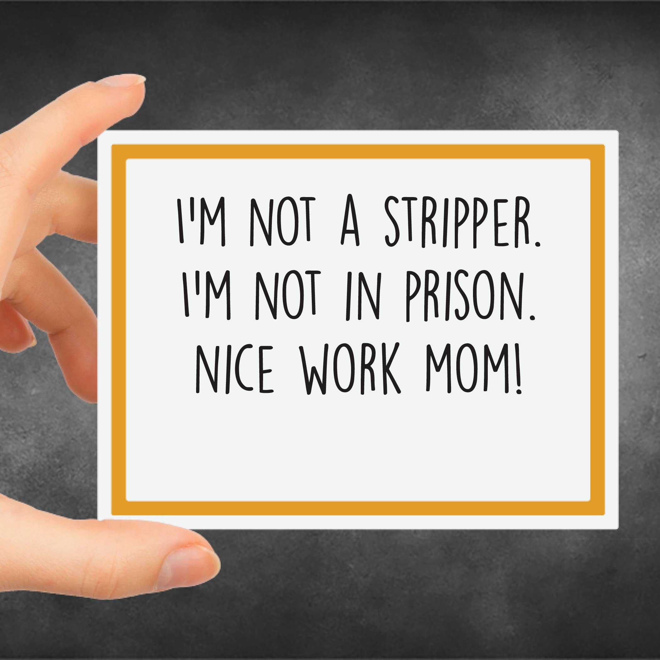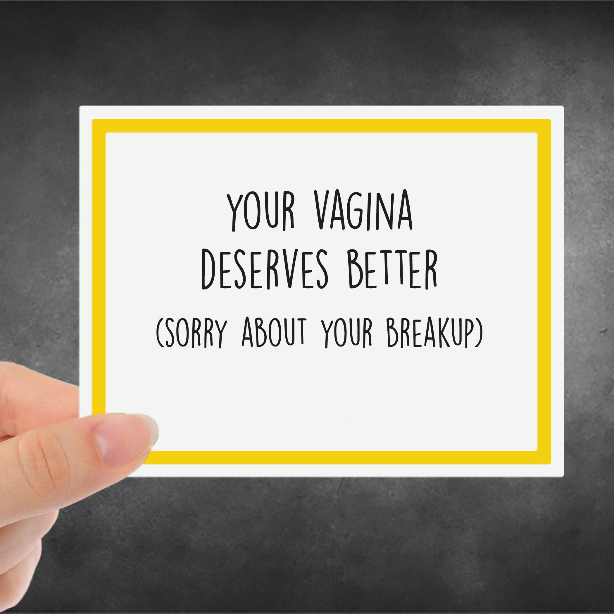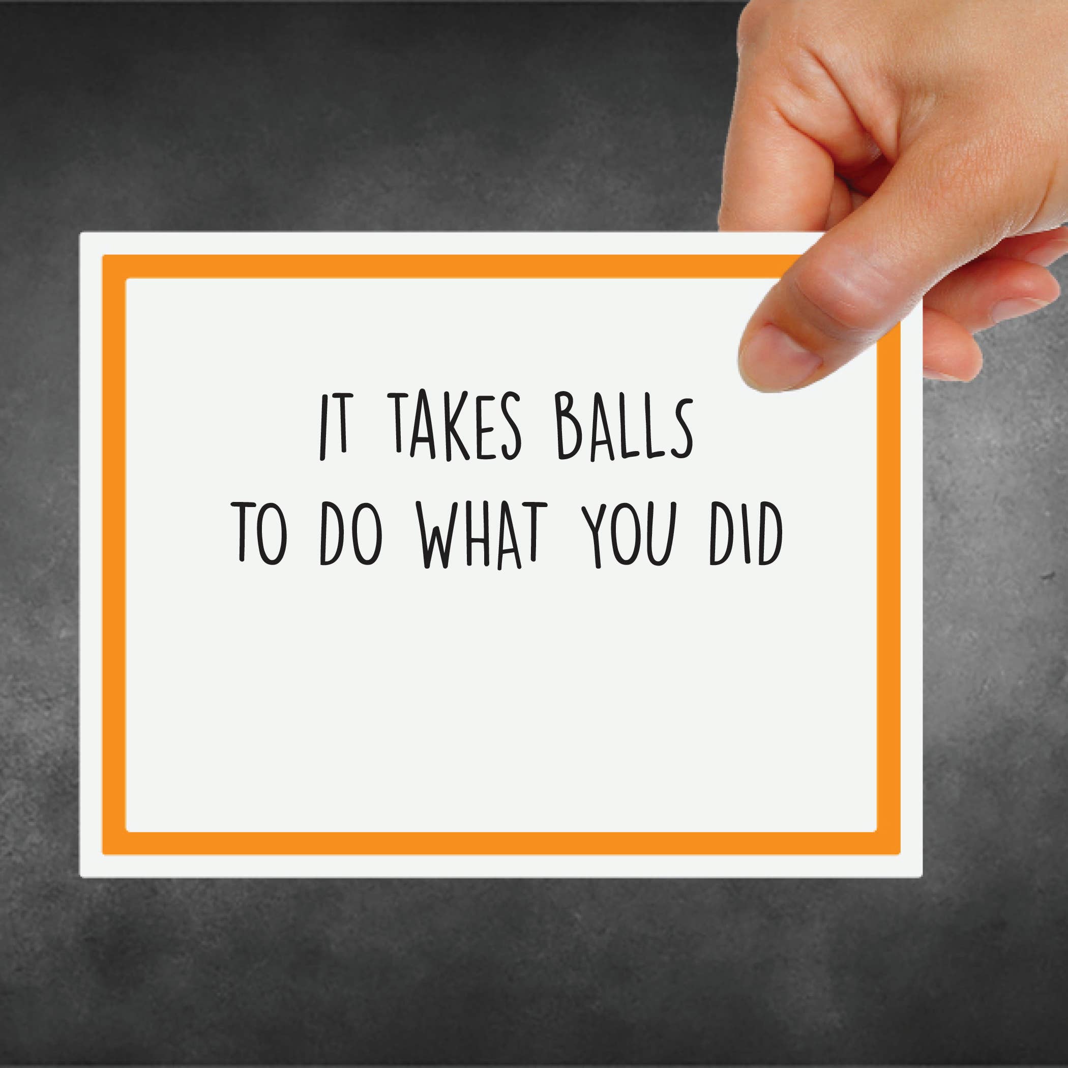 Meghan a toujours été escroquante, demandez juste à sa mère. Sérieusement, elle n'aura aucun problème à donner des exemples ! L'entreprise a commencé avec des scrapbooks et des « belles » cartes comme Meghan les appelle. Il n'a pas fallu longtemps pour unir sa passion pour les commentaires inappropriés et la fabrication de cartes pour faire rire beaucoup. Elle s'inspire de ses amis, de sa famille et des personnes qu'elle rencontre sur son chemin. La partie préférée de Meghan dans l'entreprise est d'écouter les clients cackle, ronfler et crier de rire.