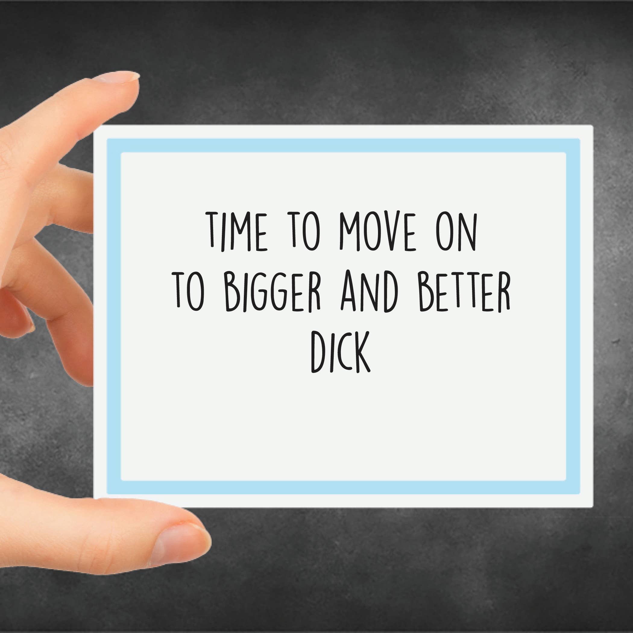 Meghan a toujours été escroquante, demandez juste à sa mère. Sérieusement, elle n'aura aucun problème à donner des exemples ! L'entreprise a commencé avec des scrapbooks et des « belles » cartes comme Meghan les appelle. Il n'a pas fallu longtemps pour unir sa passion pour les commentaires inappropriés et la fabrication de cartes pour faire rire beaucoup. Elle s'inspire de ses amis, de sa famille et des personnes qu'elle rencontre sur son chemin. La partie préférée de Meghan dans l'entreprise est d'écouter les clients cackle, ronfler et crier de rire.