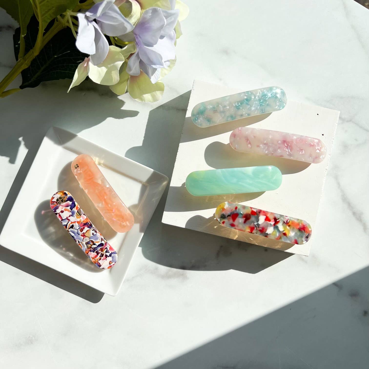 Engagés dans la mode durable, nous créons des bijoux et des accessoires capillaires en utilisant un plastique végétal et biodégradable appelé acétate de cellulose. L'acétate de cellulose est fabriqué à partir de pulpe de coton et d'acide acétique. Il n'est pas à base de pétrole et respectueux de l'environnement ! Notre matériau acétate est issu de l'éthique d'Italie et du Japon. Tous nos articles sont conçus par moi et fabriqués dans nos studios en Chine et à Boise, en Idaho. Toutes les pièces sont fixées avec des poteaux en acier chirurgical hypoallergéniques et/ou en argent sterling 925.