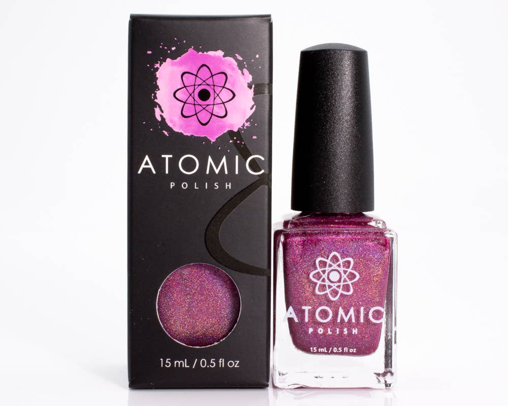 Atomic Polish a commencé comme un petit passe-temps pour passer le temps tout en restant à la maison avec mes enfants. J'étais majeure en biochimie au premier cycle et j'ai toujours eu une fascination pour tout ce qui est de la science. Le thème de ma marque est très adapté à ce que je suis en tant que personne : nerdy, coloré et unique. Au cours des 2 années suivantes, ce passe-temps s'est épanoui en un amour pour la création de beaux produits de bain et de beauté, de haute qualité et respectueux de l'environnement.