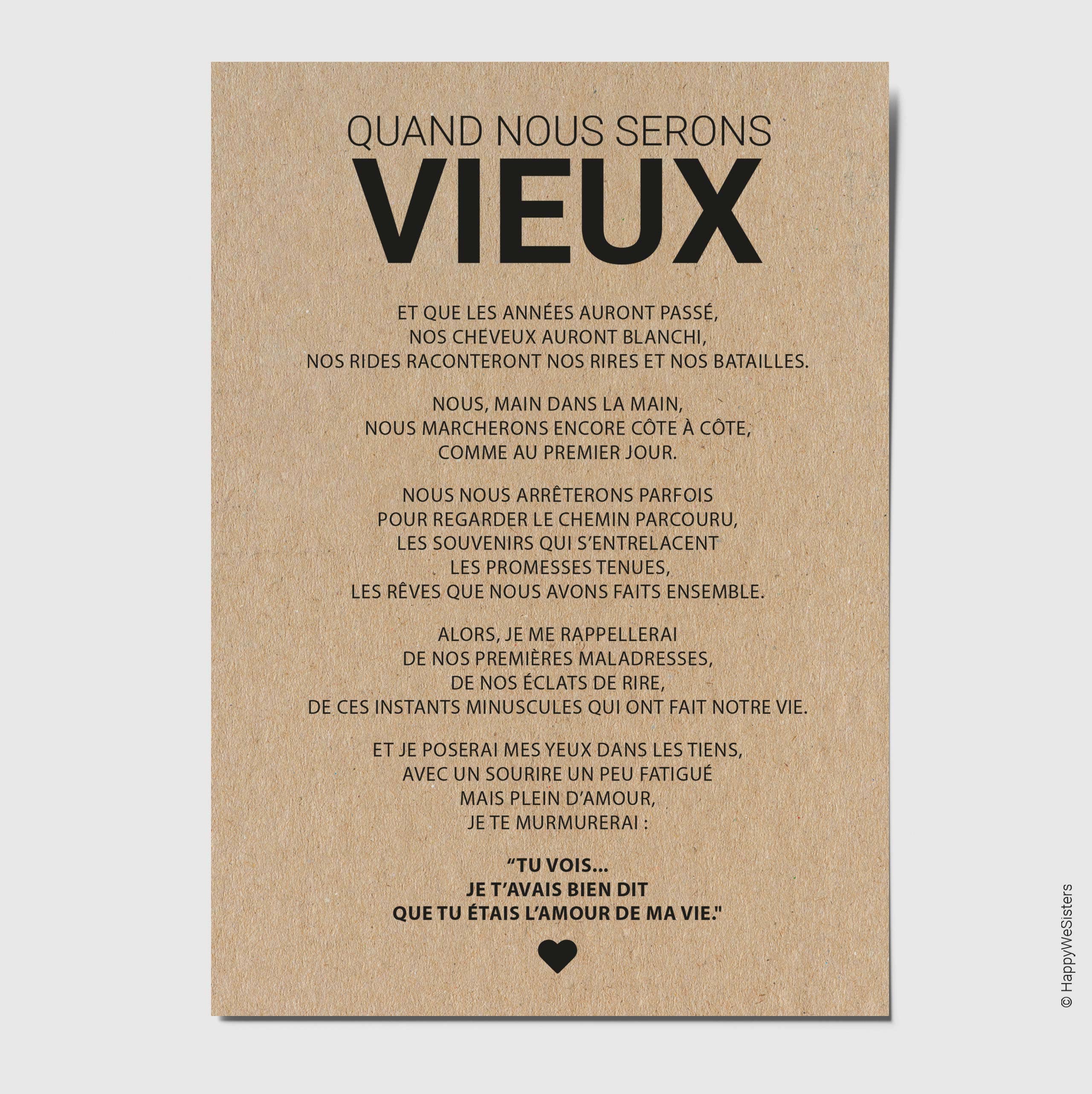 La marque HappyWeSisters est née du désir de véhiculer des messages positifs, inspirants et motivants. A travers des cartes de citations et à messages d'amitié, d'amour, d'encouragement, d'affection, permettre à chaque personne de se reconnaître, de faire le plein de bonheur et se sentir touchée en plein coeur tel est le but d'HappyWeSisters. Chaque carte est imprimée en France sur du papier naturel et éco-responsable fabriqué à base de fibres FSC® et de 10% de coques de cacao.