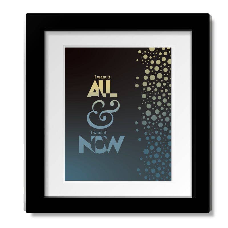 L'idée est née en 2015 de prendre un air classique et d'en faire votre œuvre d'art préférée. Affiche d'art typographique personnalisée originale illustrant des paroles de chansons à succès et des citations de votre artiste préféré et de votre époque musicale. Un cadeau unique pour les passionnés de musique. Découvrez les meilleurs classiques du rock des années 60, 70, 80 et au-delà. Disponible sous forme d'imprimés, d'imprimés emmêlés, d'imprimés encadrés et emmêlés, d'emballages en toile et de supports de plaques laminées.