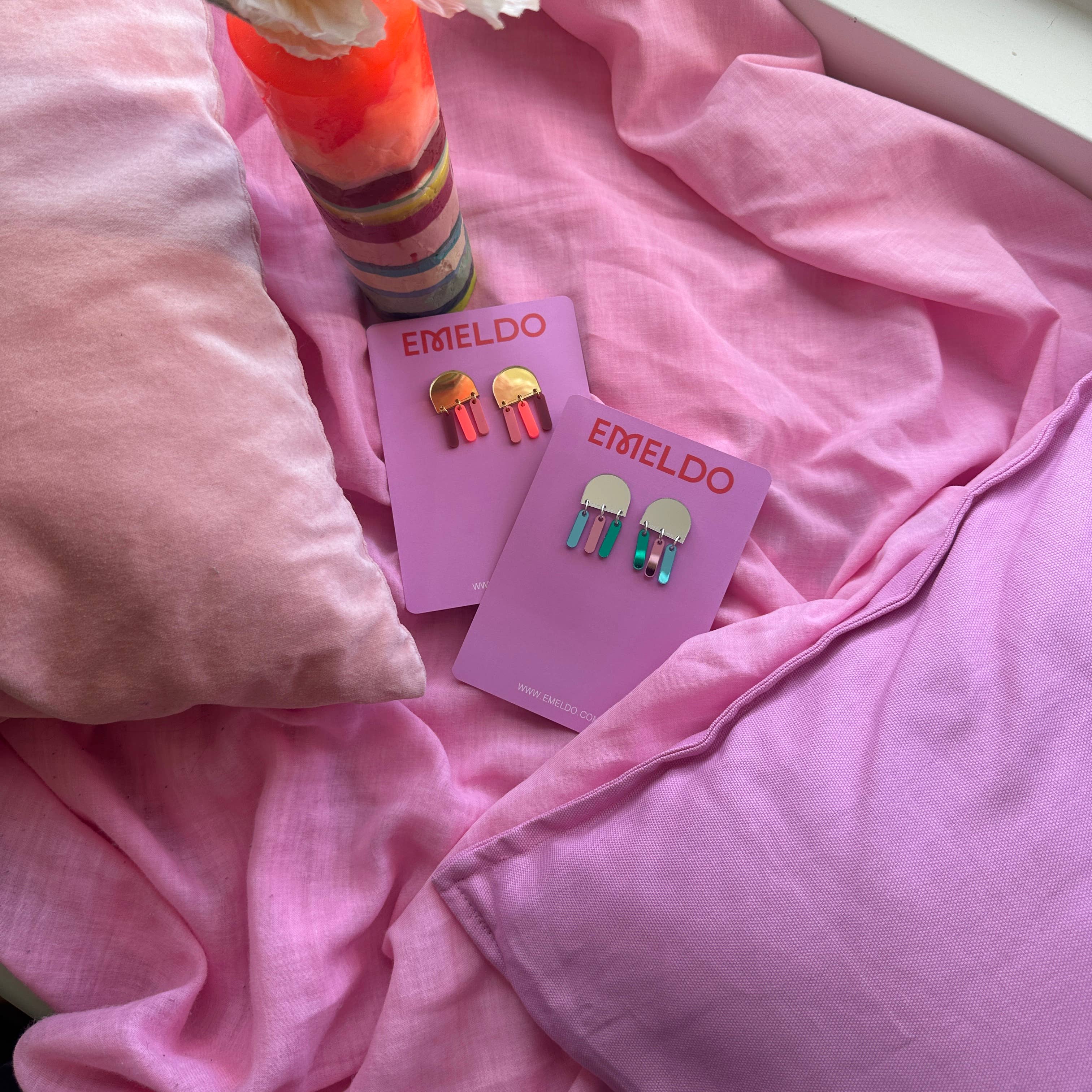 Emeldo est une petite entreprise australienne qui met l'accent sur le fun, la couleur et qui n'hésite pas à être grande et audacieuse. Les articles sont fabriqués à la main dans un studio dans la péninsule de Mornington, dans l'État de Victoria, et constituent une petite marque gérée en solo. Nous produisons des boucles d'oreilles de haute qualité principalement en acrylique et nous nous concentrons sur la vente en gros.