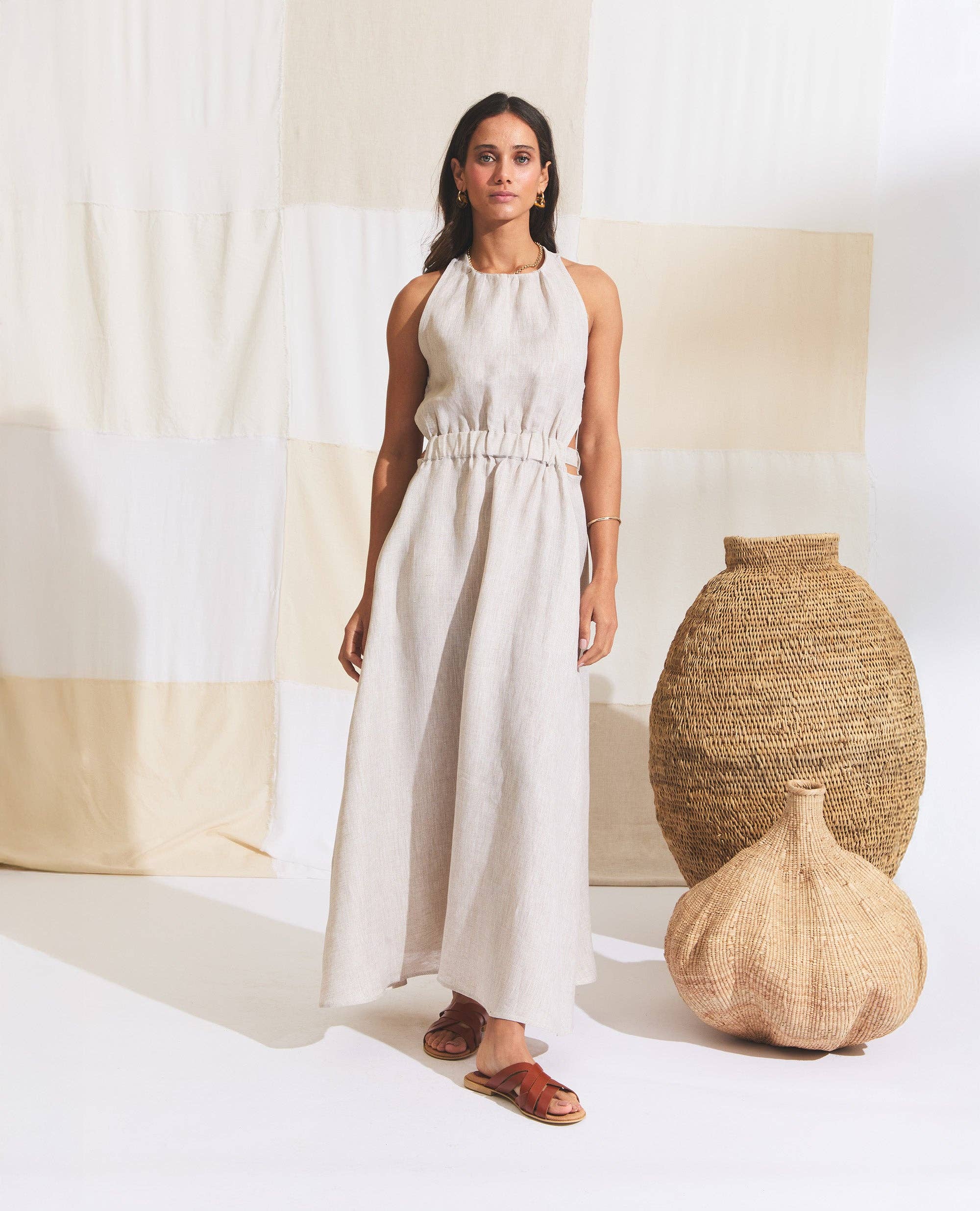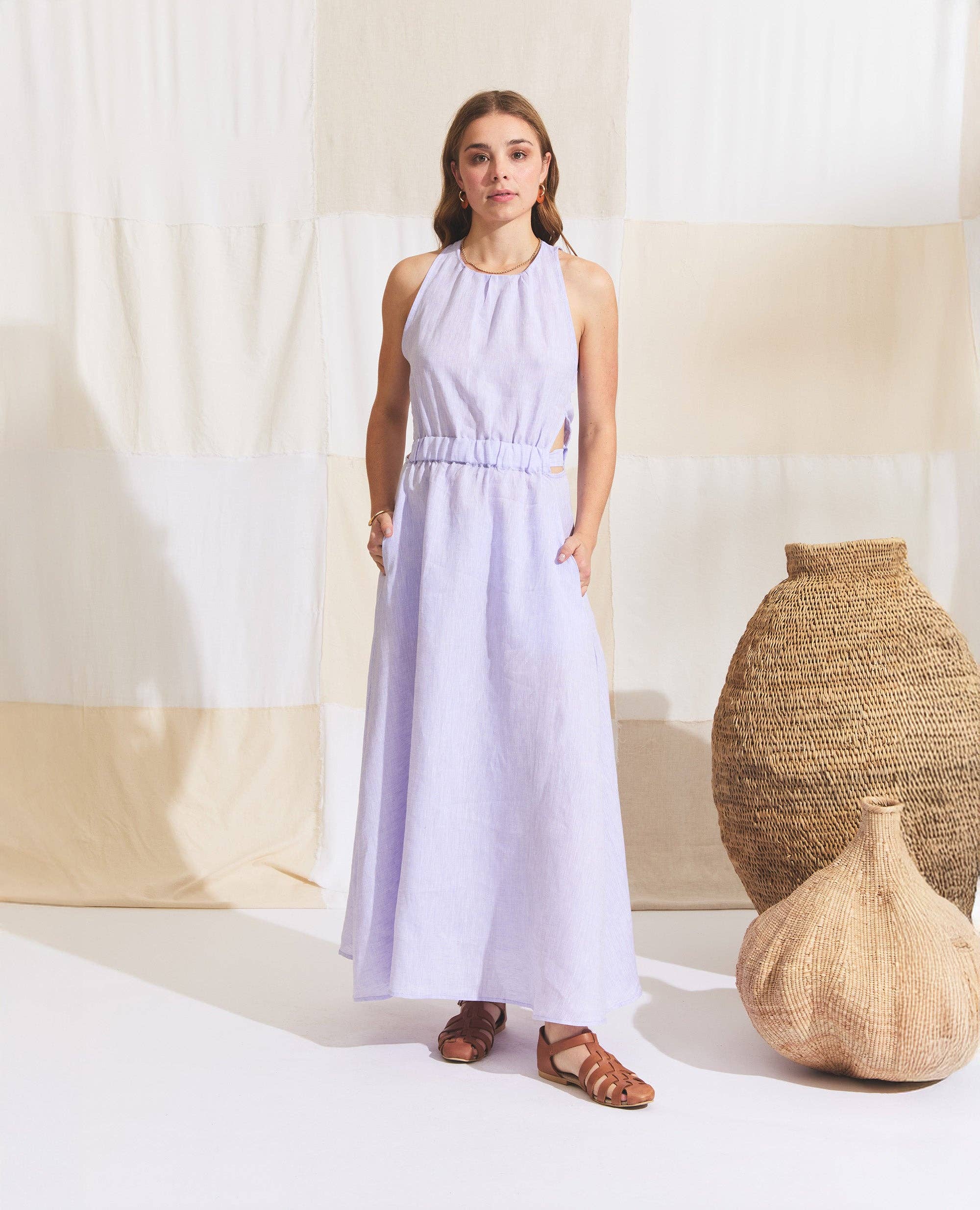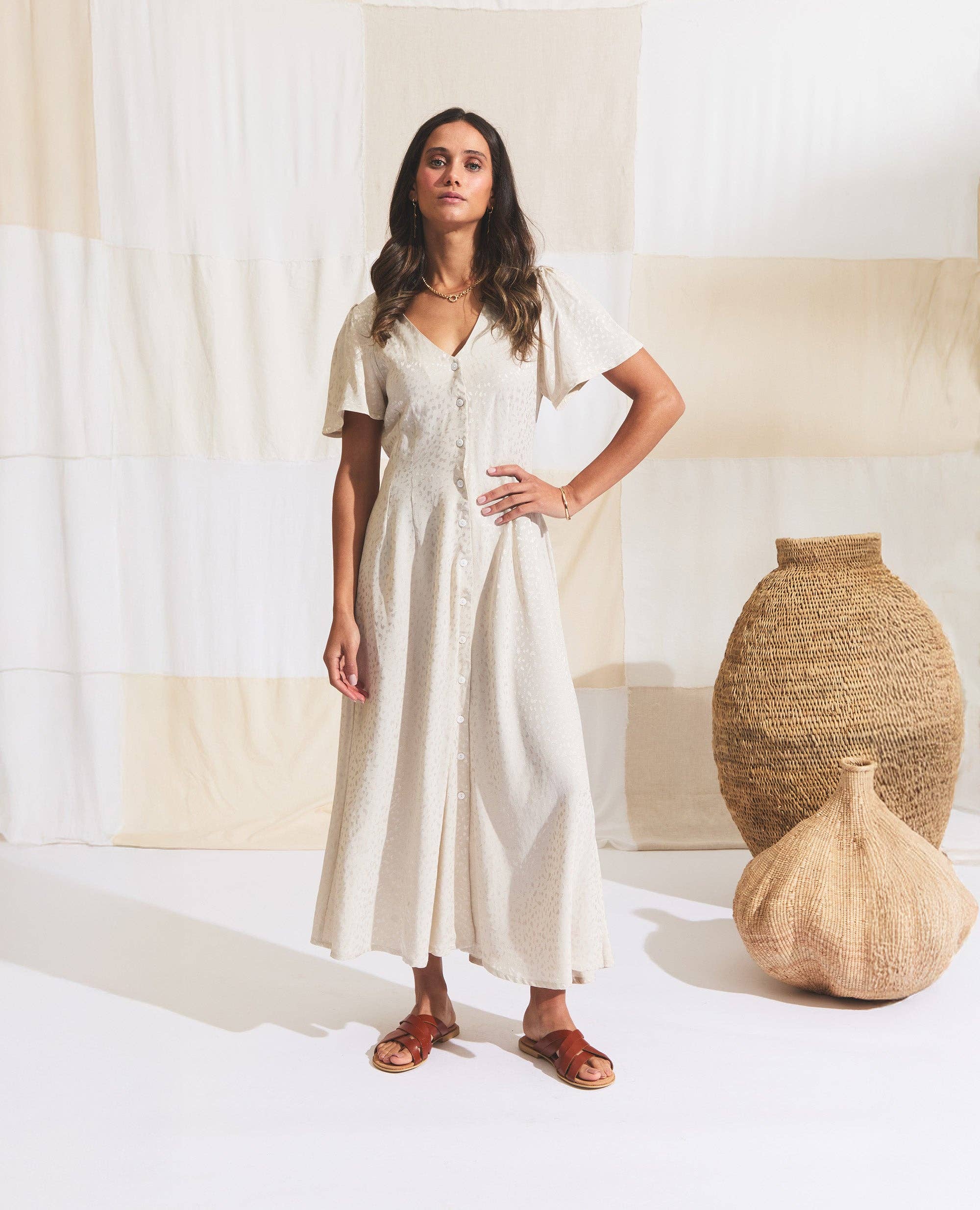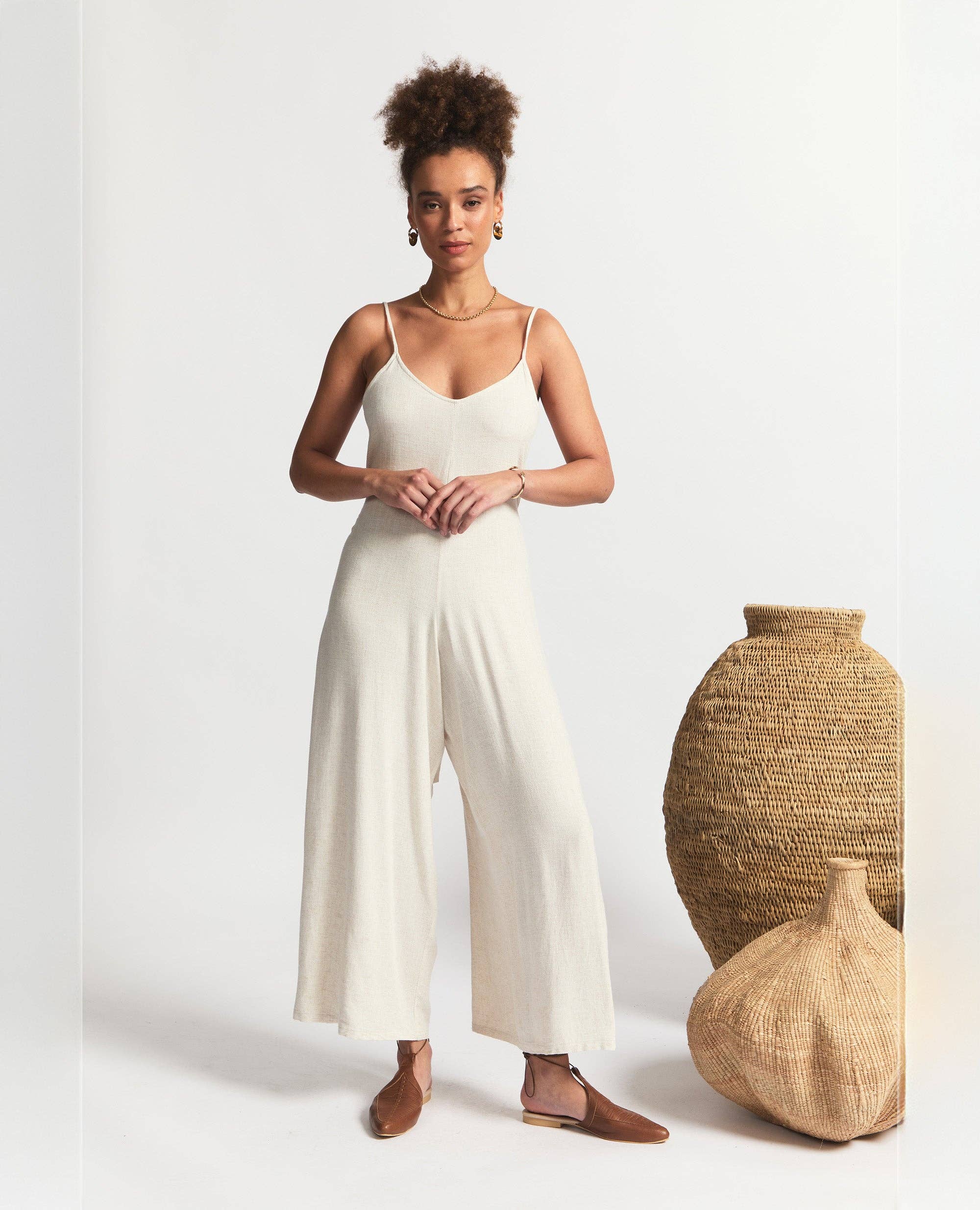 Sitting Pretty crée des pièces simples et décontractées caractérisées par des tons doux et des coupes légères et lâches, offrant une nonchalance discrète et contrôlée avec une touche de sensualité. Alliant chic bohème et sophistication urbaine, la marque jongle ludiquement des silhouettes ethniques, des coutures masculines et des codes de vêtements de sport, avec un soupçon d'esthétique romantique. En ajoutant à la collection, nous élargissons actuellement les chaussures et accessoires en cuir. Avec la conscience environnementale, le commerce éthique et l'intégrité qui sous-tendent la philosophie du label, nous nous attachons tout particulièrement à l'approvisionnement en fibres naturelles et respectueuses de l'environnement telles que le coton biologique et le chanvre. Le soin et le respect sont donnés aux personnes qui produisent nos collections. Conçu et fabriqué au Cap.