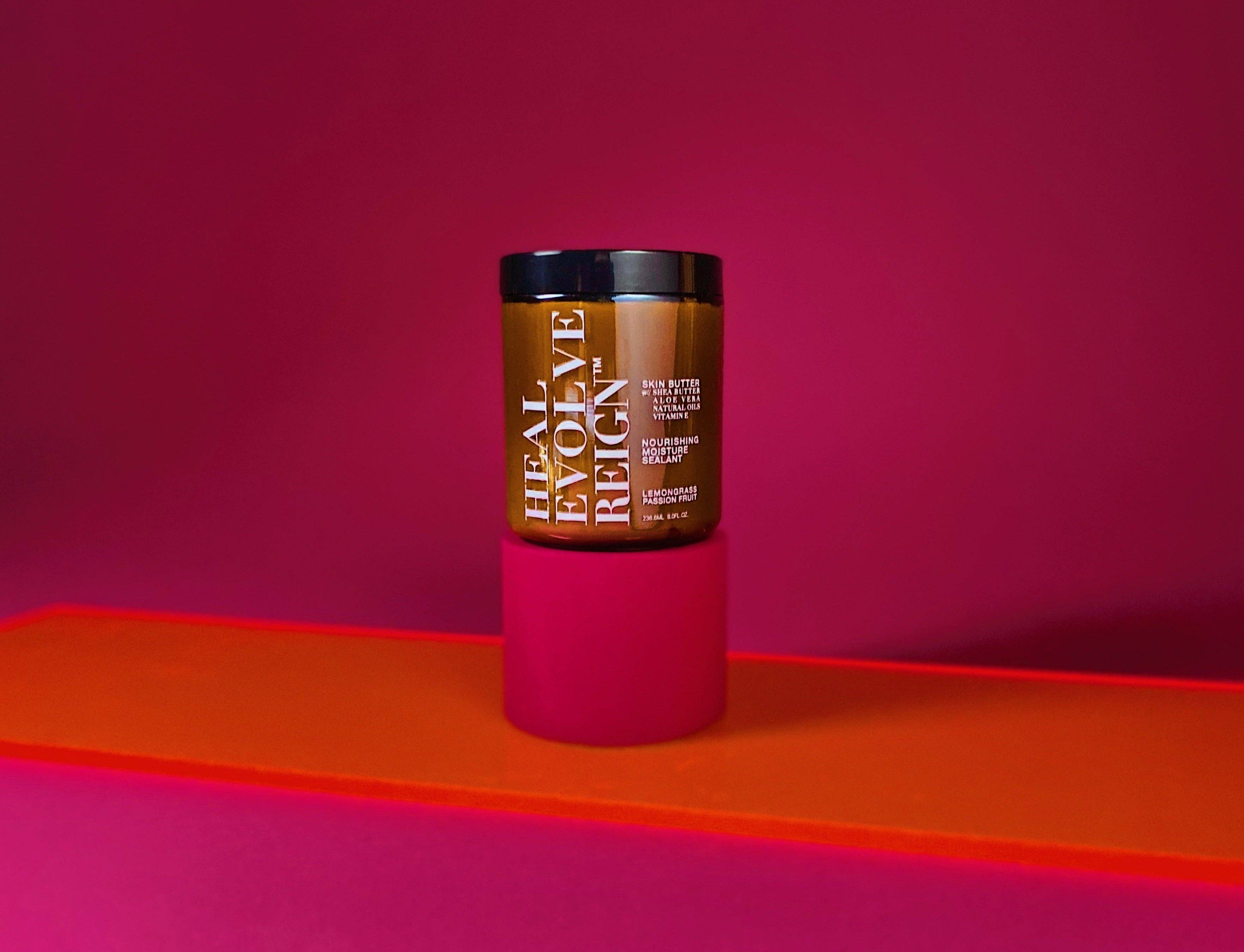 Heal Evolve Reign se consacre à la production de beurre pour la peau de haute qualité pour tous ceux qui aiment se faire plaisir. Nous pensons que tout le monde mérite de prendre soin de sa peau et de la nourrir avec les meilleurs ingrédients. C'est pourquoi nous n'utilisons que les meilleures huiles et beurres naturels dans nos produits. Notre beurre pour la peau est composé d'un mélange de beurre de karité, de jus de feuilles d'aloe vera, d'extrait de racine de gingembre et d'huiles naturelles riches en vitamines, minéraux et acides gras. D'une consistance succulente, semi-fouettée et crémeuse, ces ingrédients hydratent et nourrissent la peau en profondeur, la laissant douce, lisse, éclatante et protégée. Chez Heal Evolve Reign, nous pensons que les soins personnels font partie intégrante d'un mode de vie sain et heureux et doivent être célébrés avec des produits de haute qualité. C'est pourquoi nous avons créé un beurre pour la peau qui non seulement chouchoute la peau, mais qui suscite également une sensation de détente et de gourmandise. Nous espérons que vous vous joindrez à nous pour vous offrir un peu de luxe avec Heal Evolve Reign - Skin Butter.