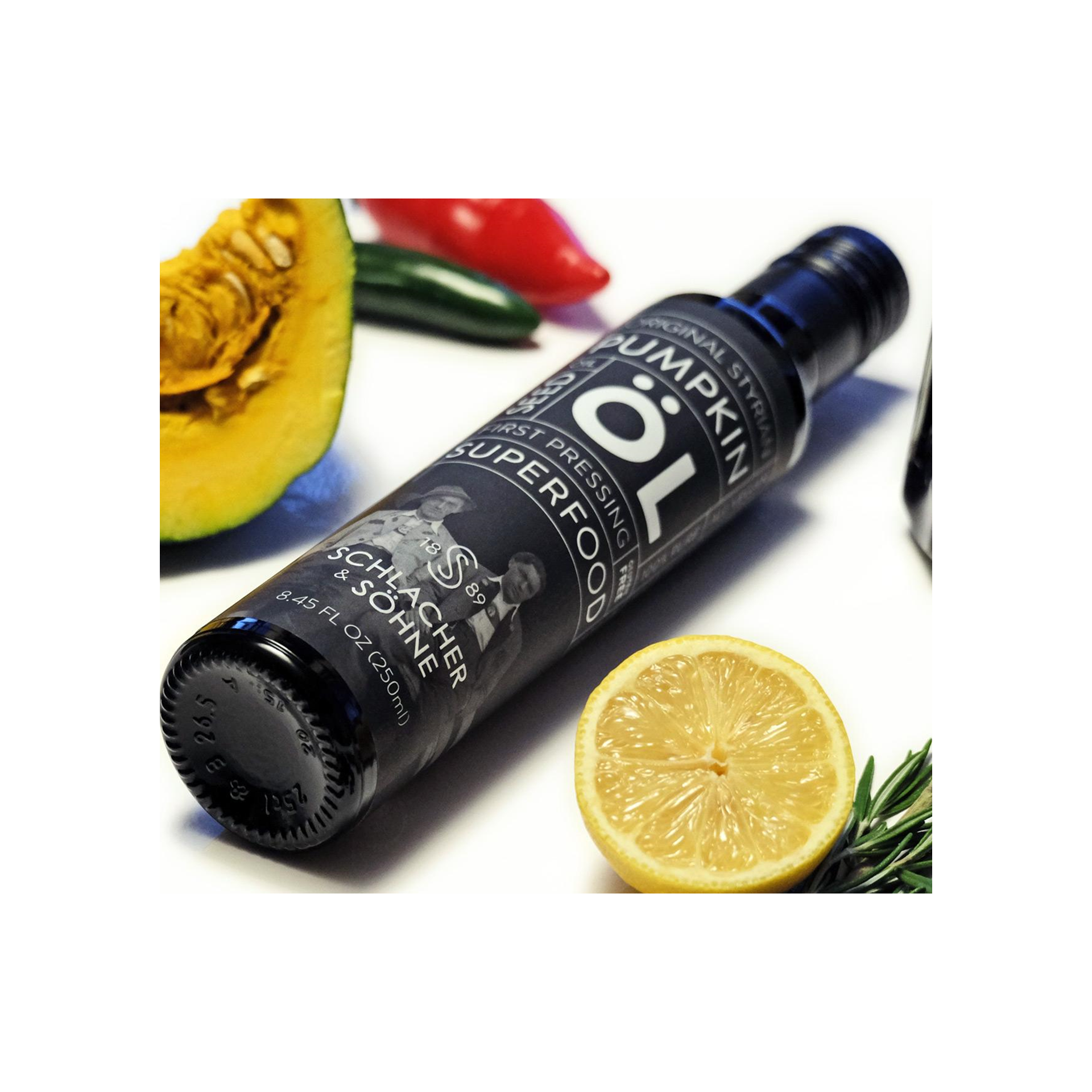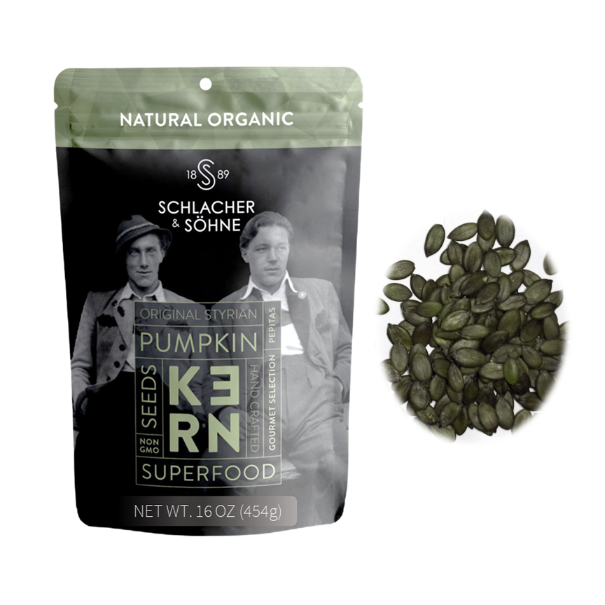 Chaque année, nous allions faire de longues vacances en famille à travers le pays, skier et visiter toutes les merveilleuses régions gastronomiques de toute l'Autriche. Une chose qui est toujours restée constante était d'avoir l'huile de graines de citrouille à la table et garçon avons-nous aimer l'huile. Cette huile n'étant pas disponible aux États-Unis, nous avons toujours apporté une valise supplémentaire pour ramener des bouteilles afin que nous puissions l'utiliser chez nous. Quiconque est venu, on leur ferait essayer et ils voudraient une bouteille. Nous avons donc décidé de faire une affaire avec quelque chose que nous aimons et de l'introduire sur le marché américain. Notre Vision La mission de Schlacher & Söhne est de familiariser les consommateurs avec l'expérience gustative unique des graines de citrouille styrienne et de l'huile de graines de citrouille et de sensibiliser davantage les clients à la diversité de ces merveilleux produits. L'huile de graines de citrouille — jusqu'à présent principalement utilisée dans les salades — doit être définie comme un précieux bijou culinaire, capable d'épicer les plats de plusieurs façons. Nous espérons que vous apprécierez autant nos produits et nous vous les présentons.